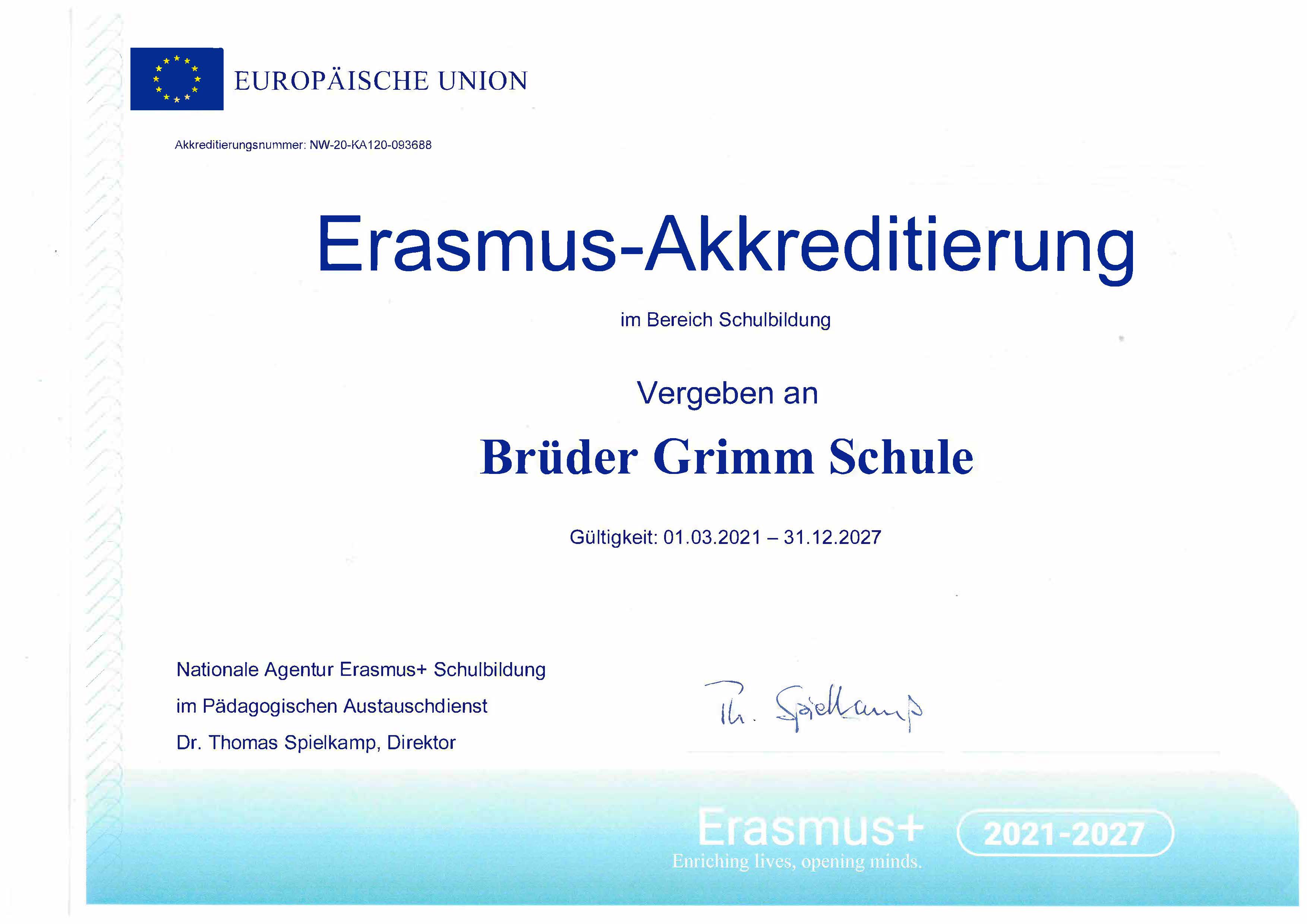 In der letzten Woche habe wir unsere Erasmus-Akkreditierung für die Jahre 2021 - 2027 erhalten.