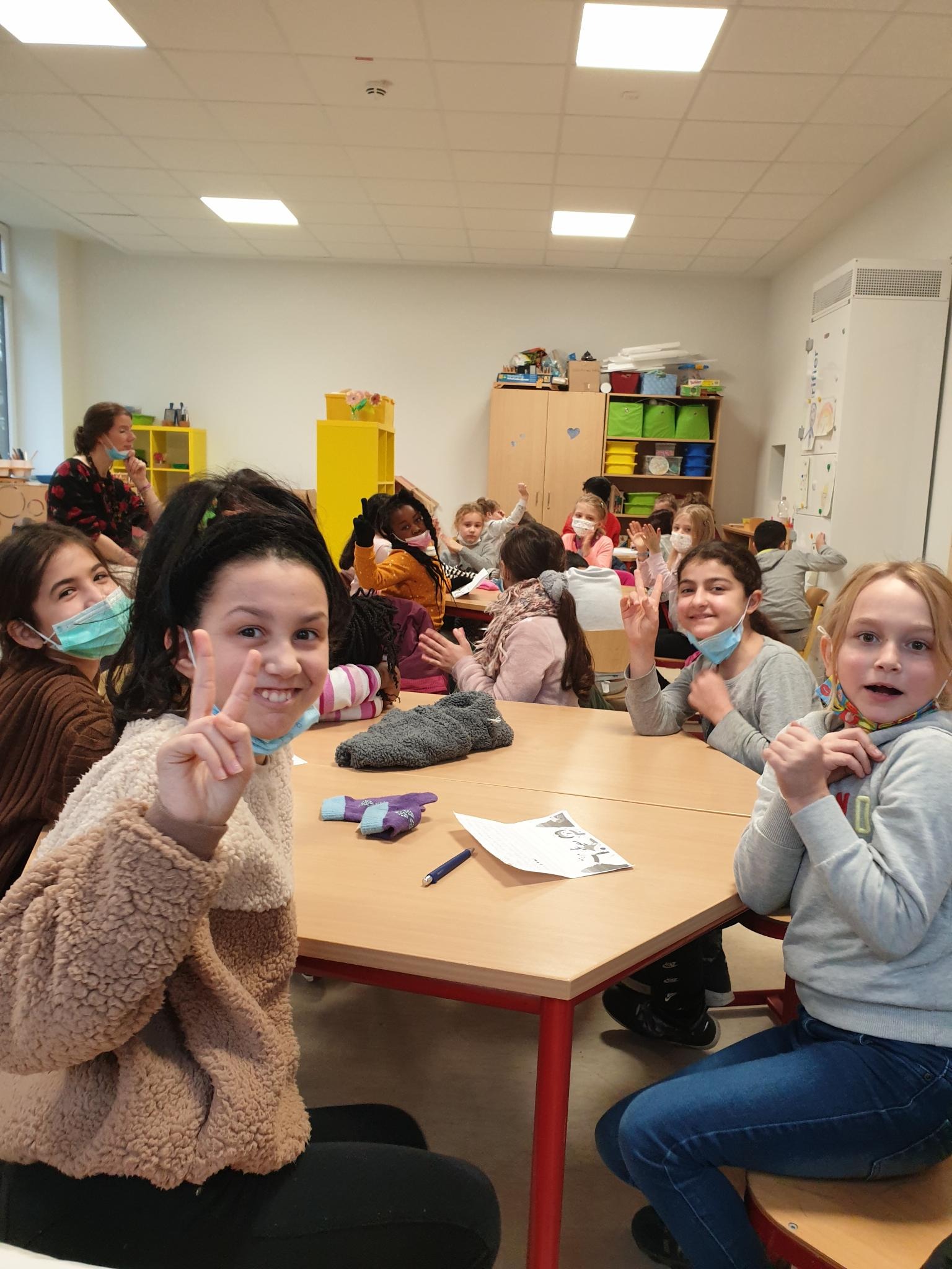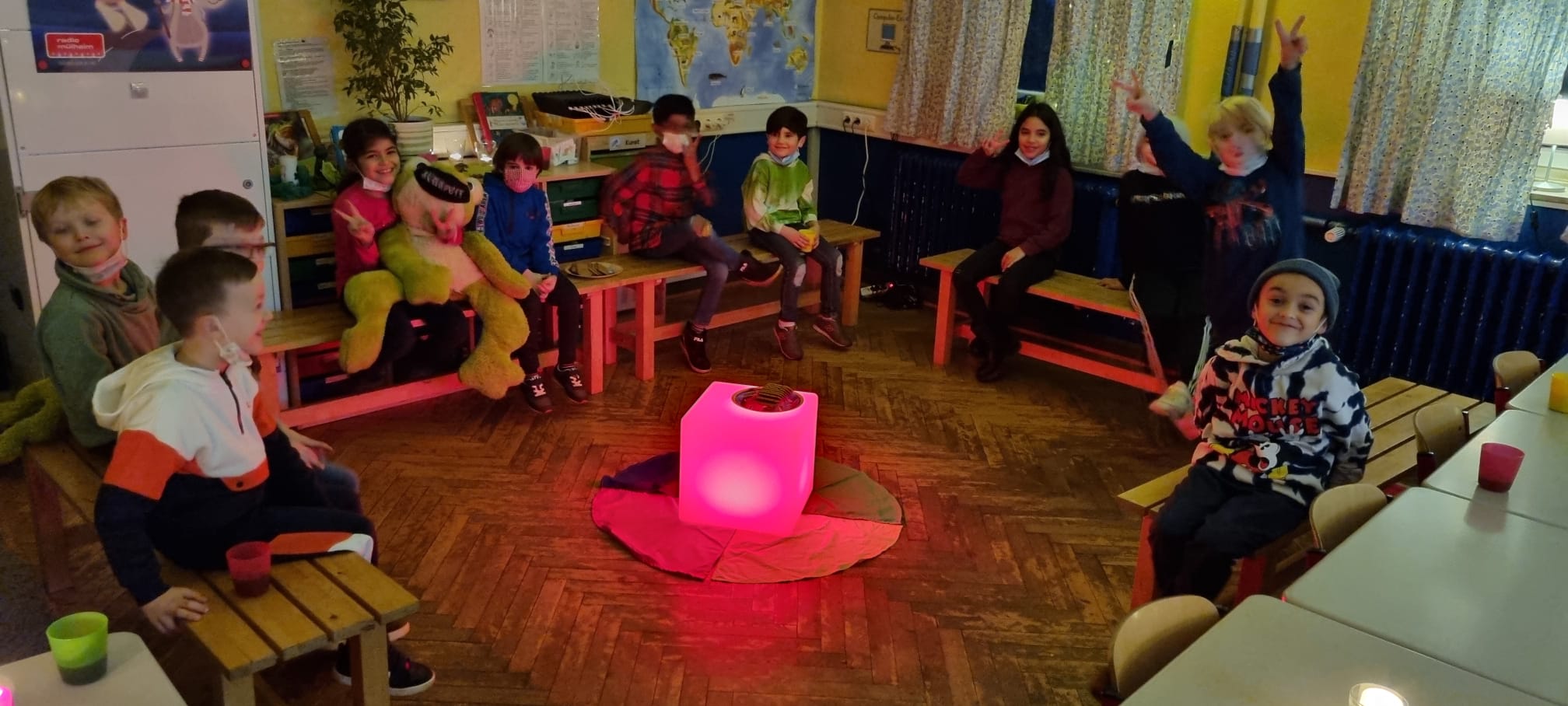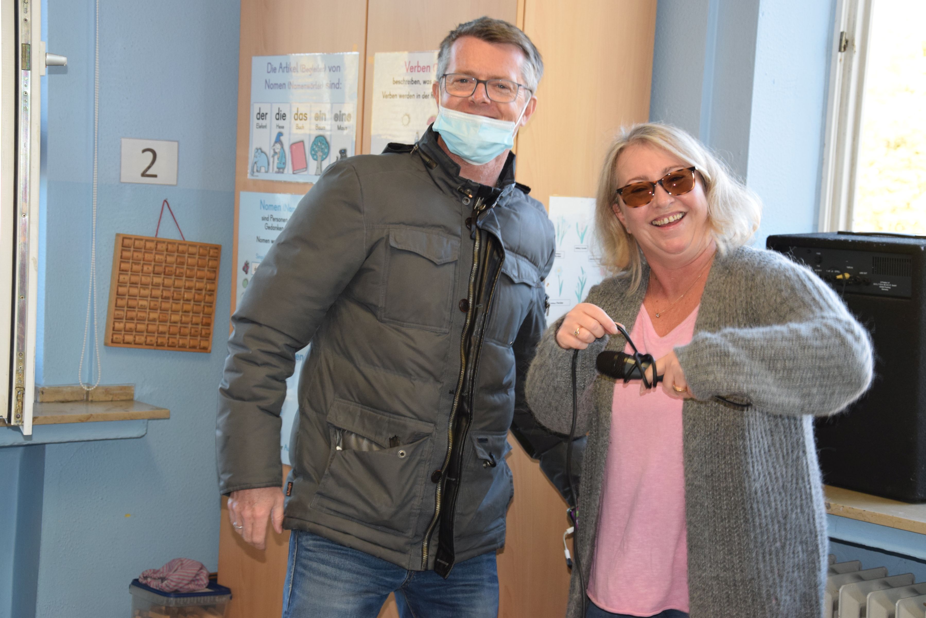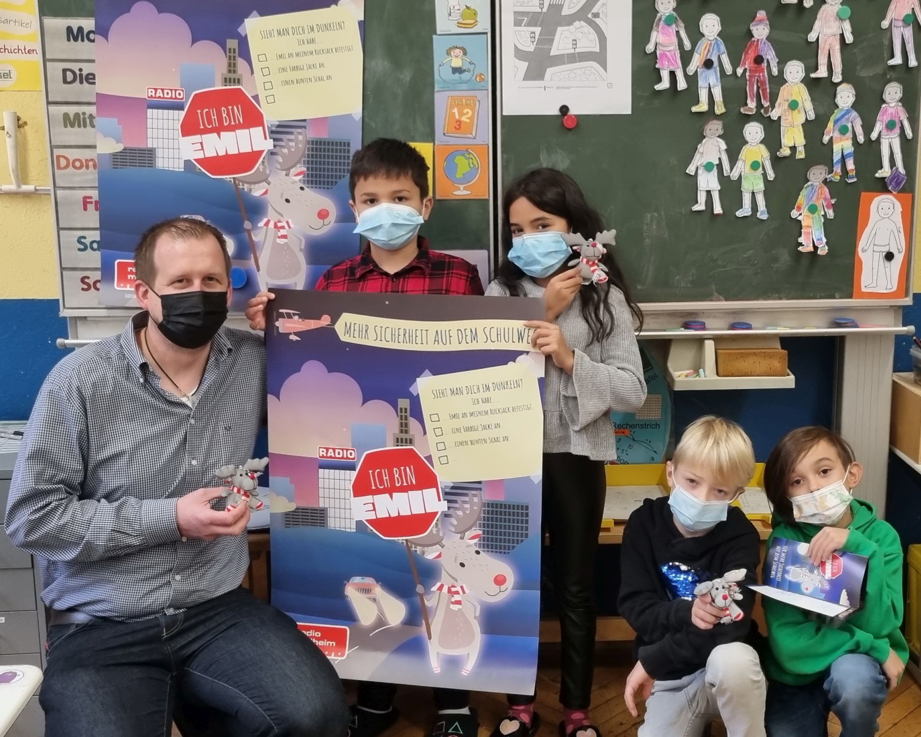 Heute haben die Frösche 🐸 und Igel - Klasse 🦔 Besuch von Radio Mülheim und Elch Emil bekommen.