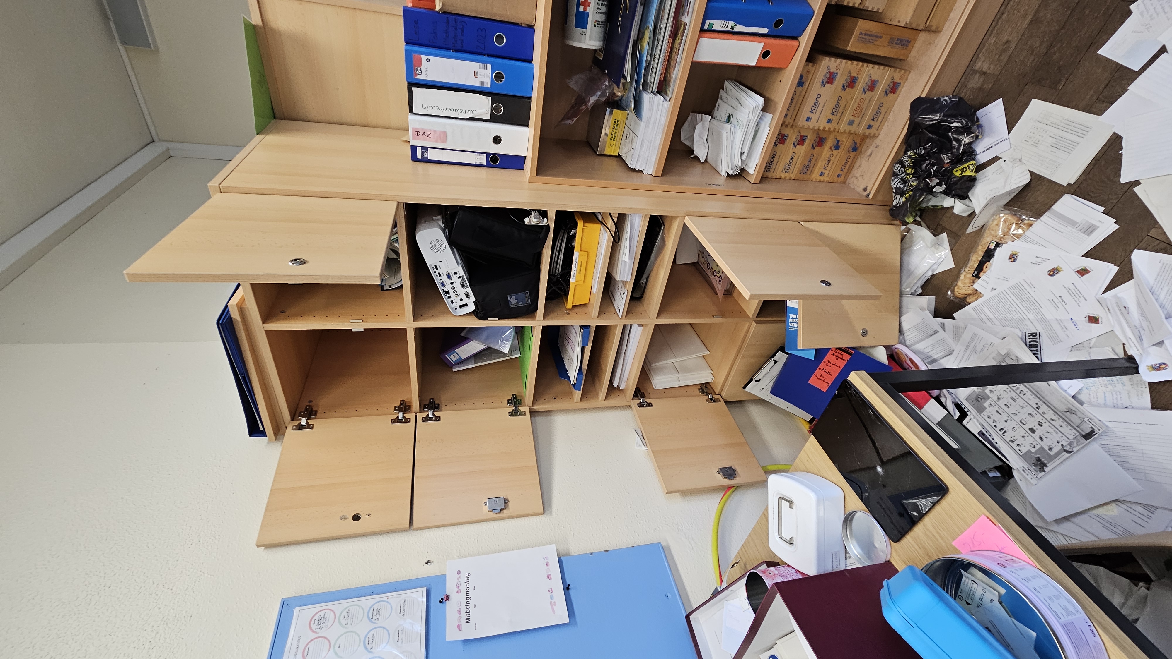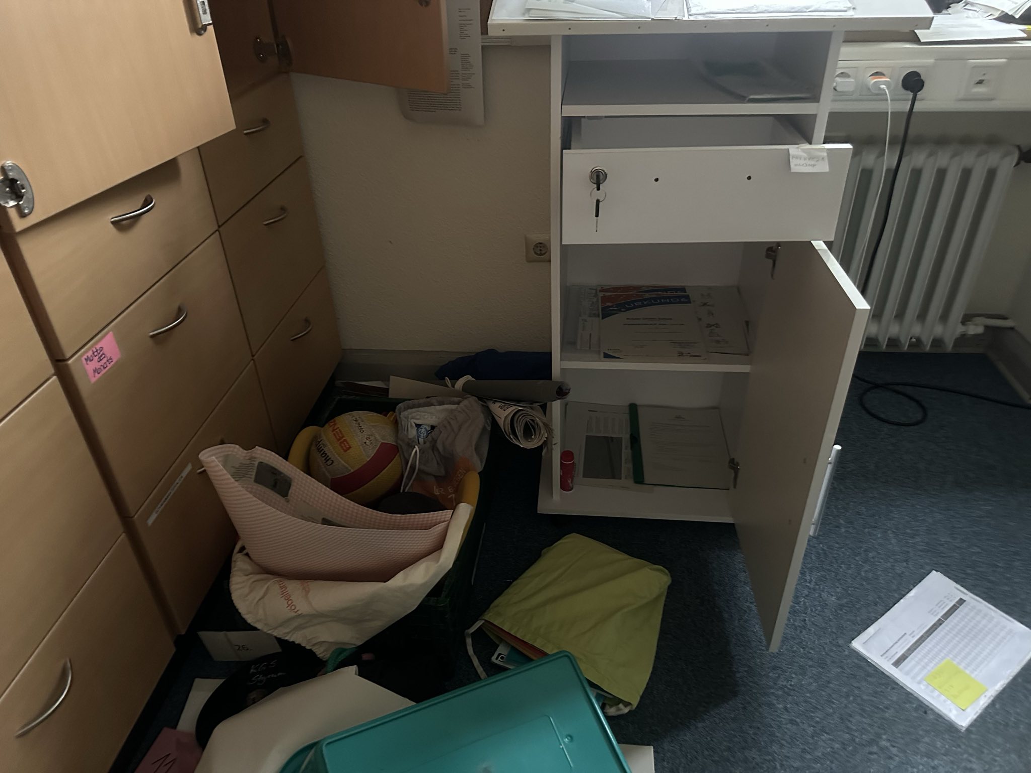 Was für ein Schreck heute Morgen! Leider musste unsere Hausmeisterin schon wieder die Polizei rufen und einen Einbruch melden.🤬 Dieses Mal haben es die Täter sogar ins ganze Schulgebäude geschafft und Schränke und Regale im gesamten Gebäude ausgeräumt und verteilt. Einige Türen wurden zerstört, Schlösser geknackt… Mit viel Mühe und Teamarbeit ist jetzt alles wieder fein hergerichtet!