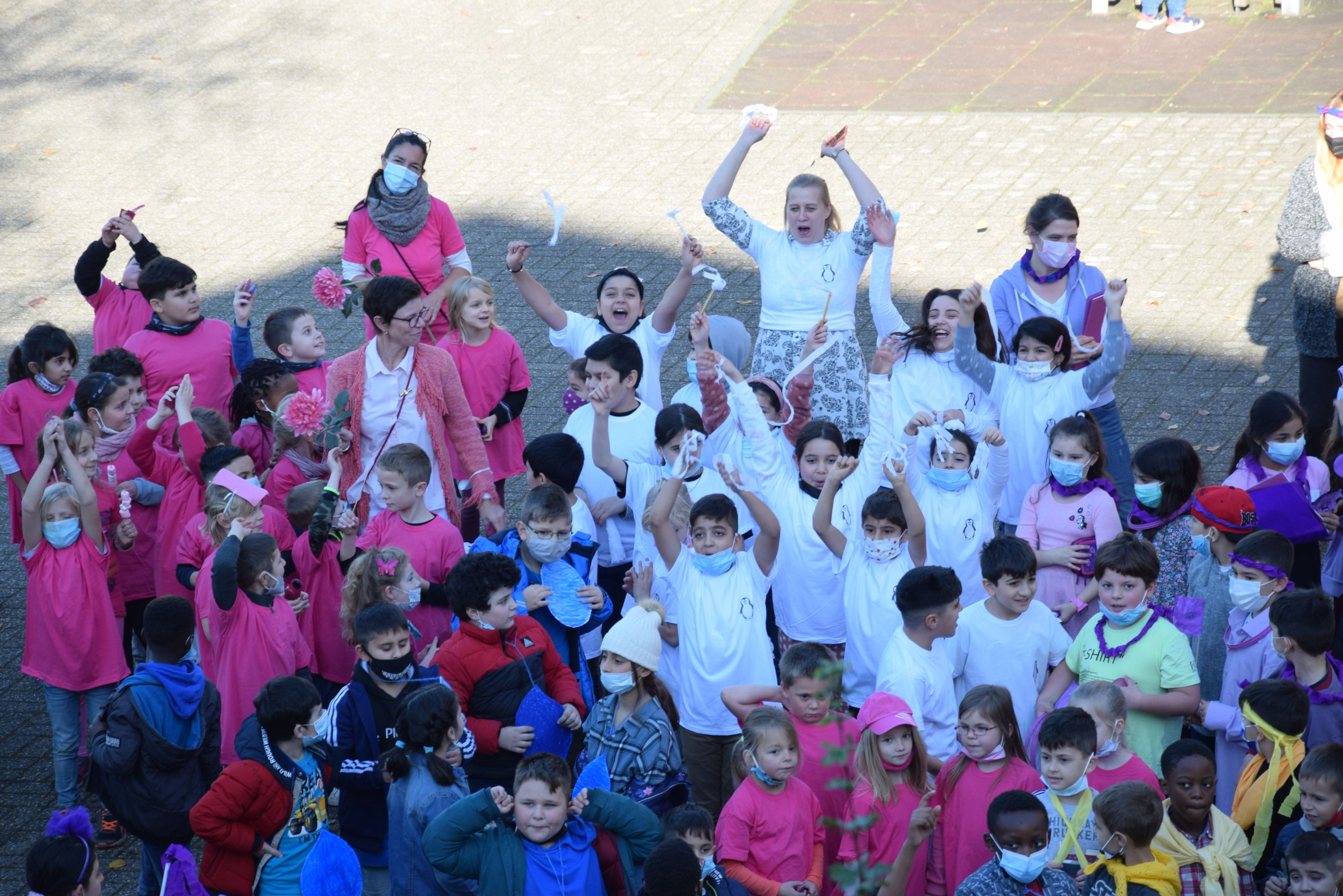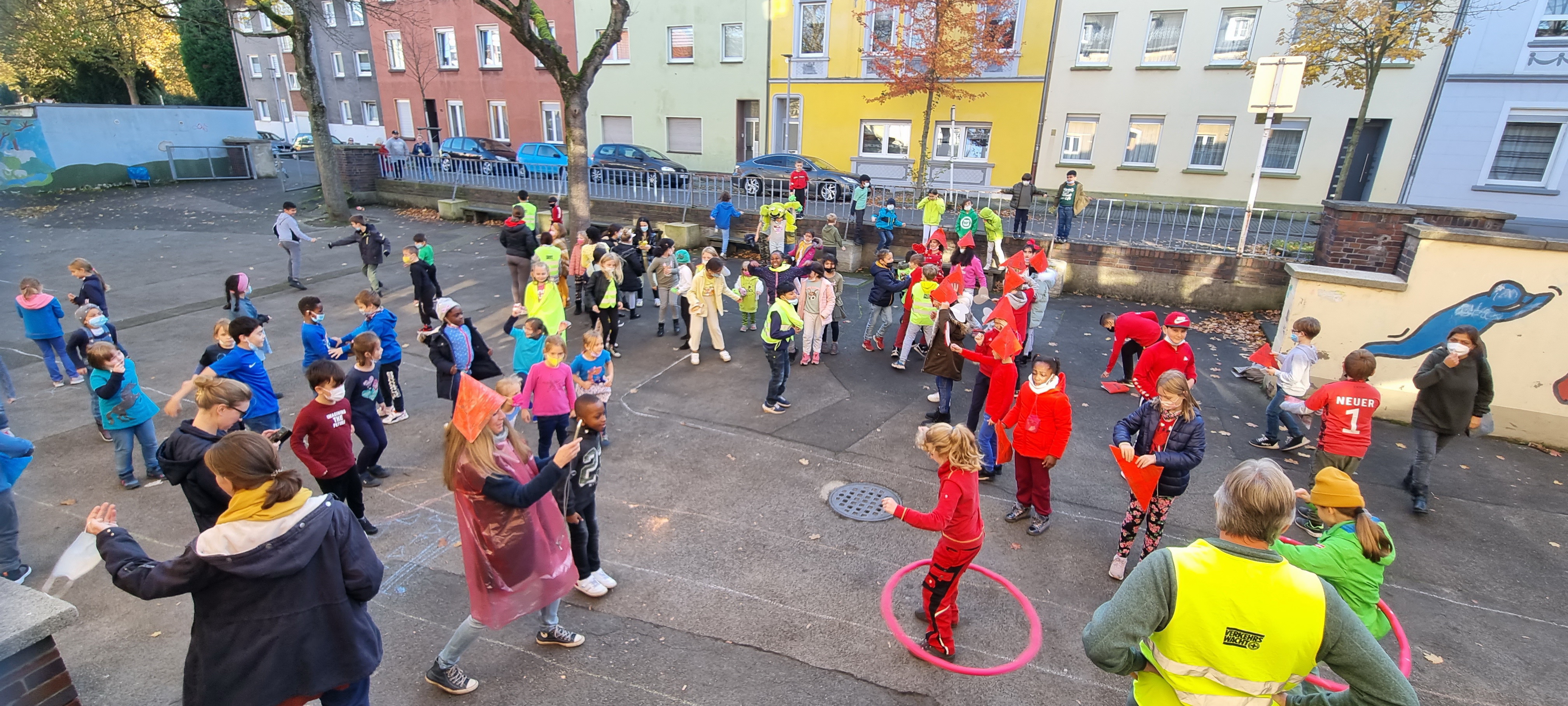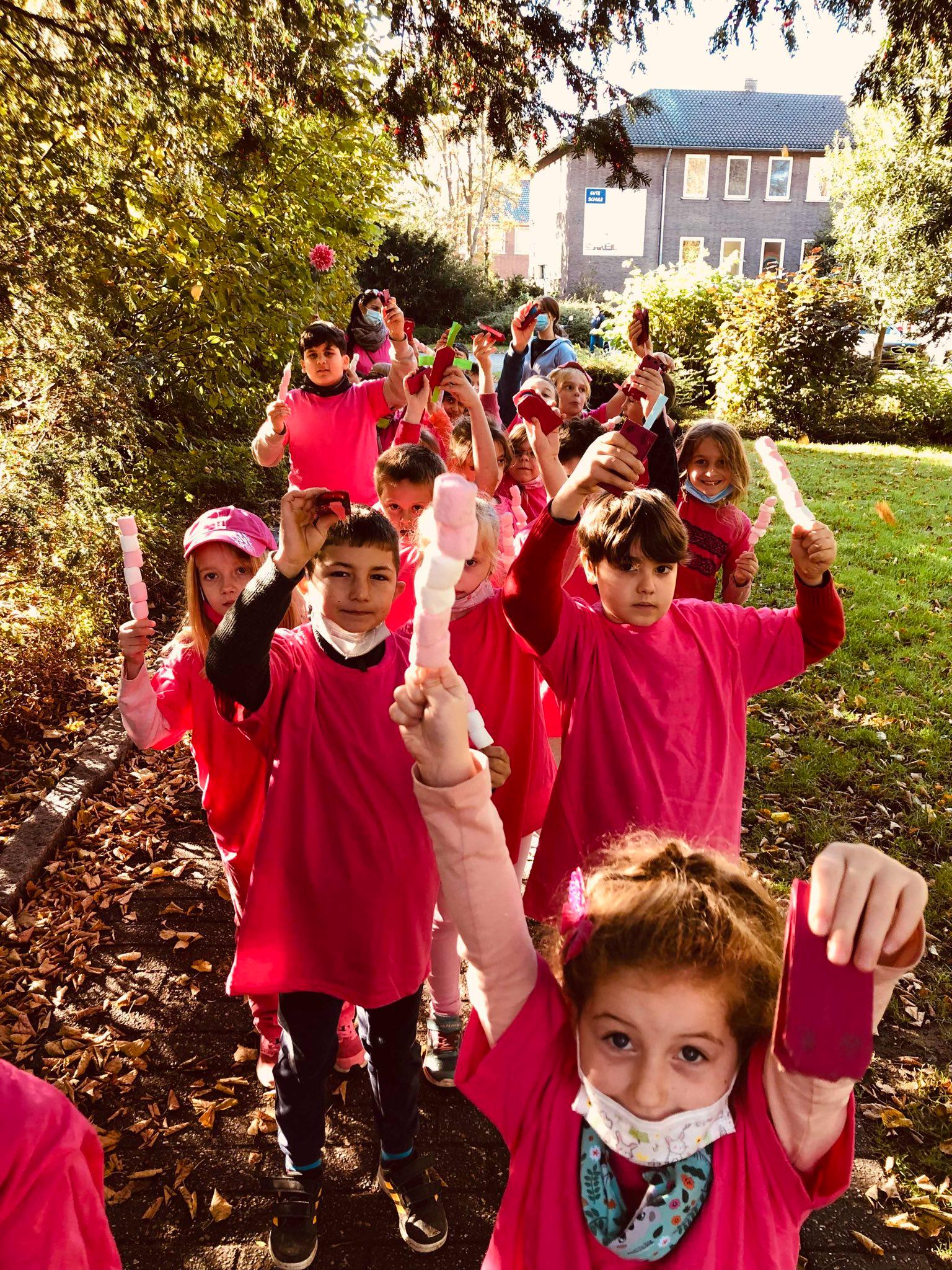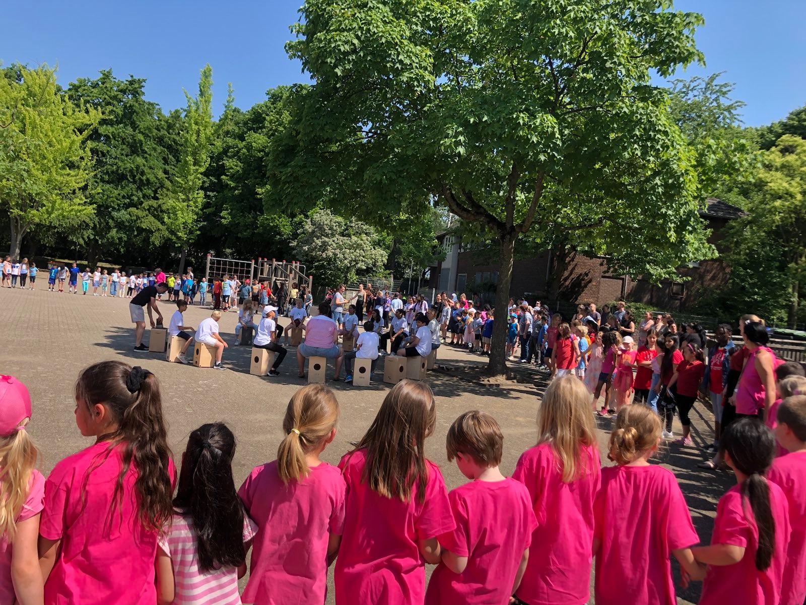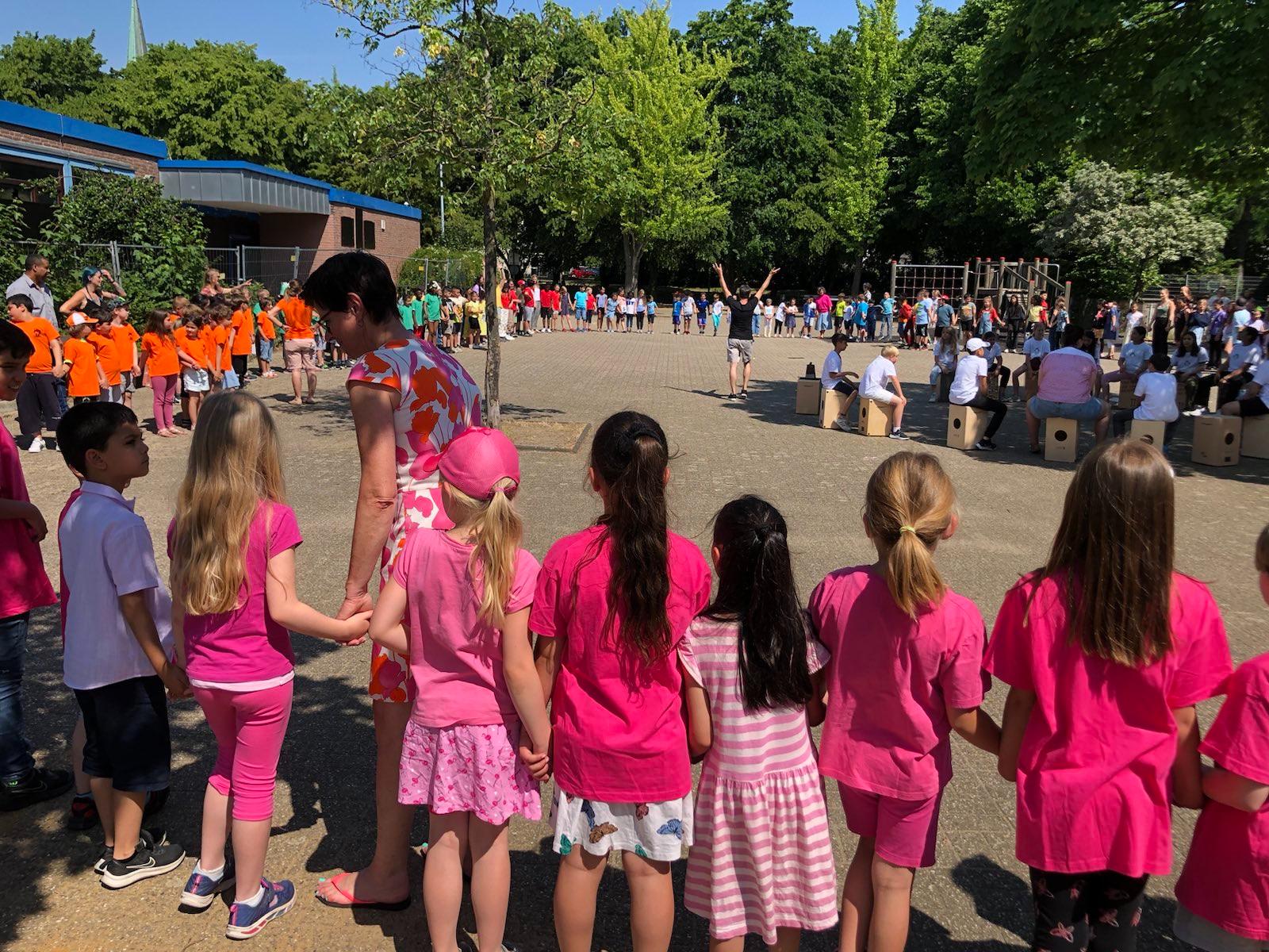 Jeder Klasse wurde eine Farbe zugeordnet und so gab es ein buntes Durcheinander auf den Schulhöfen.