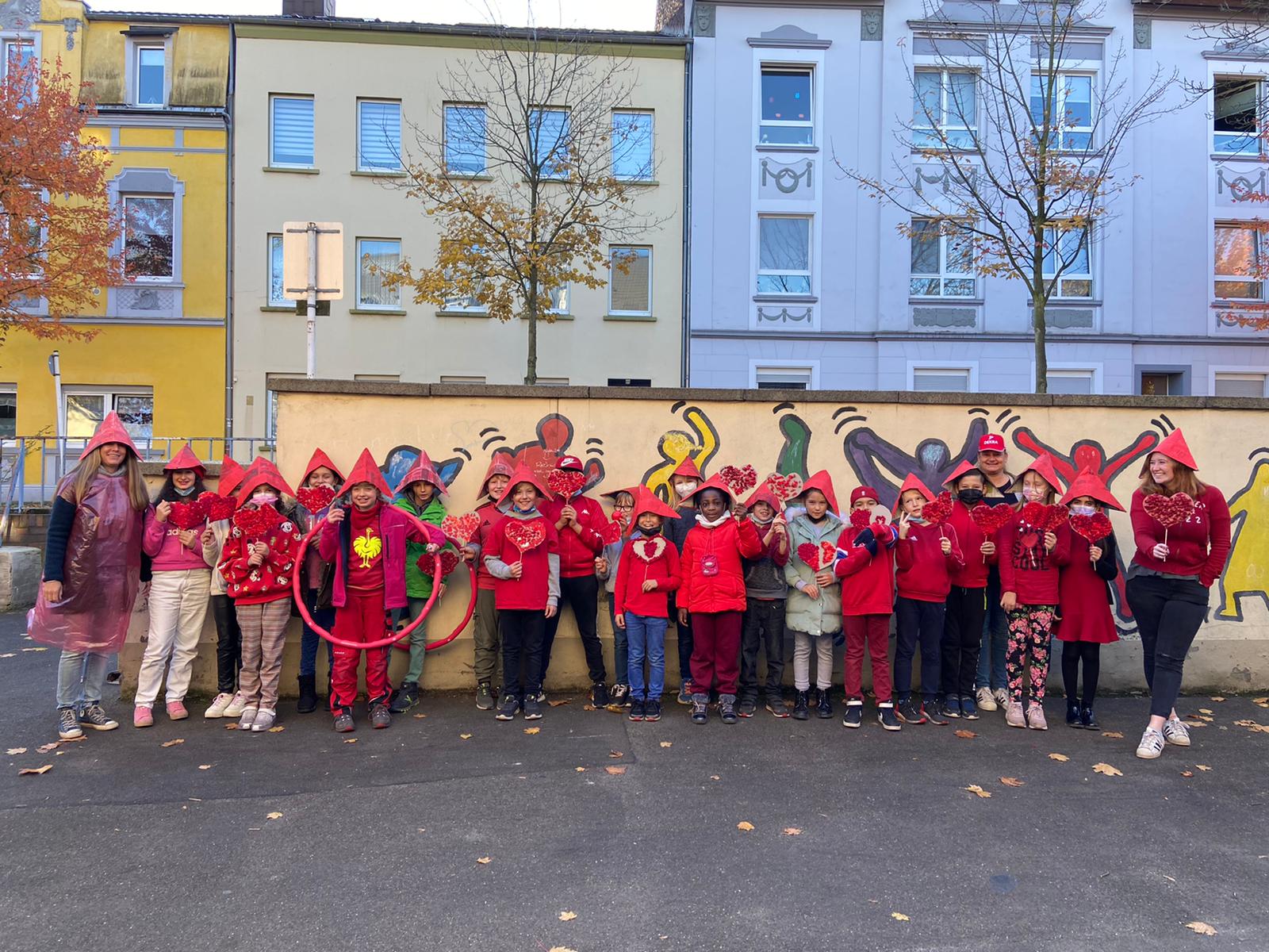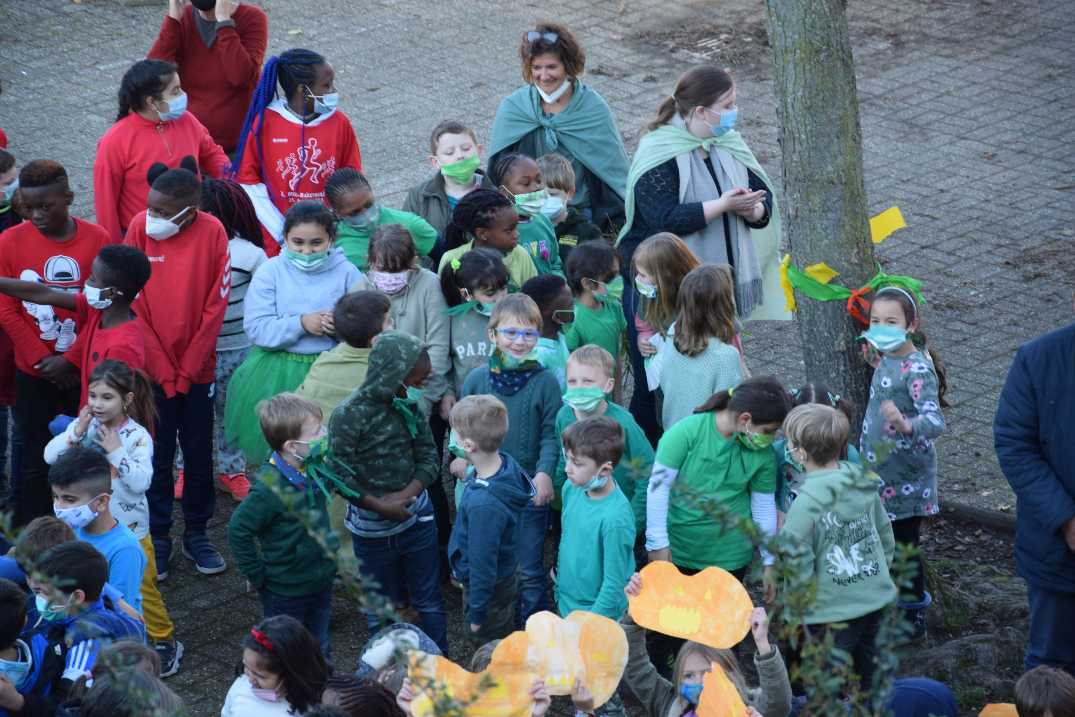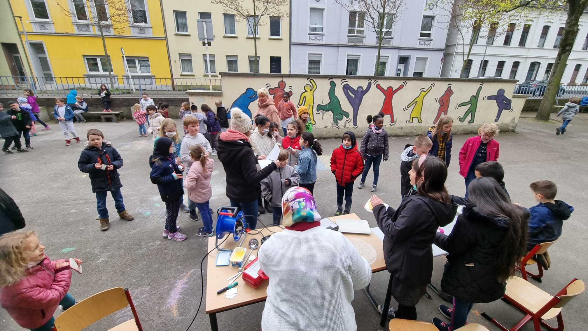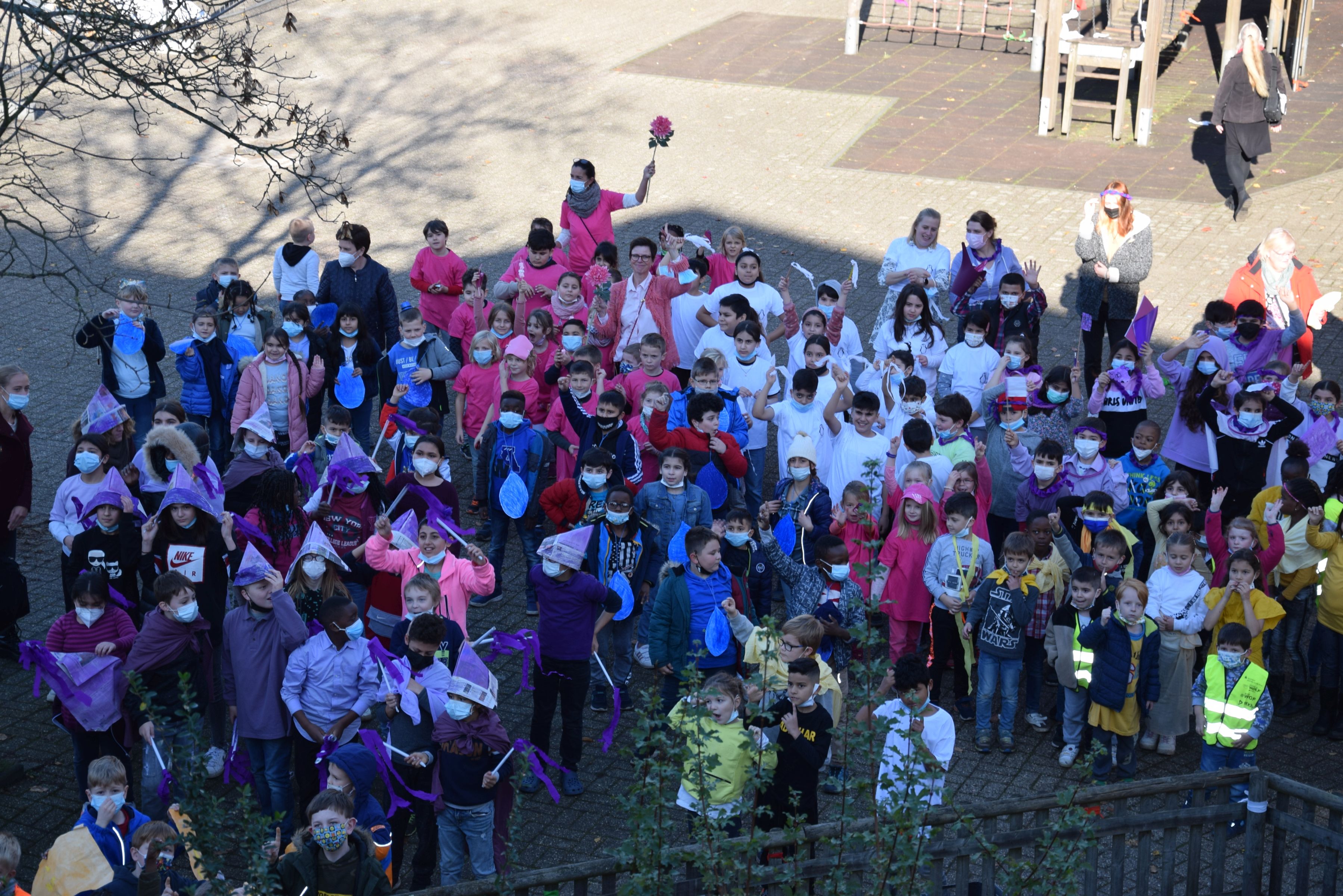 Jeder Klasse wurde eine Farbe zugeordnet und so gab es ein buntes Durcheinander auf den Schulhöfen.