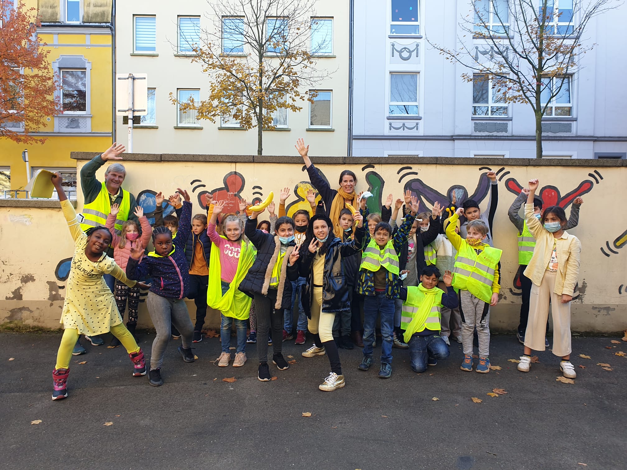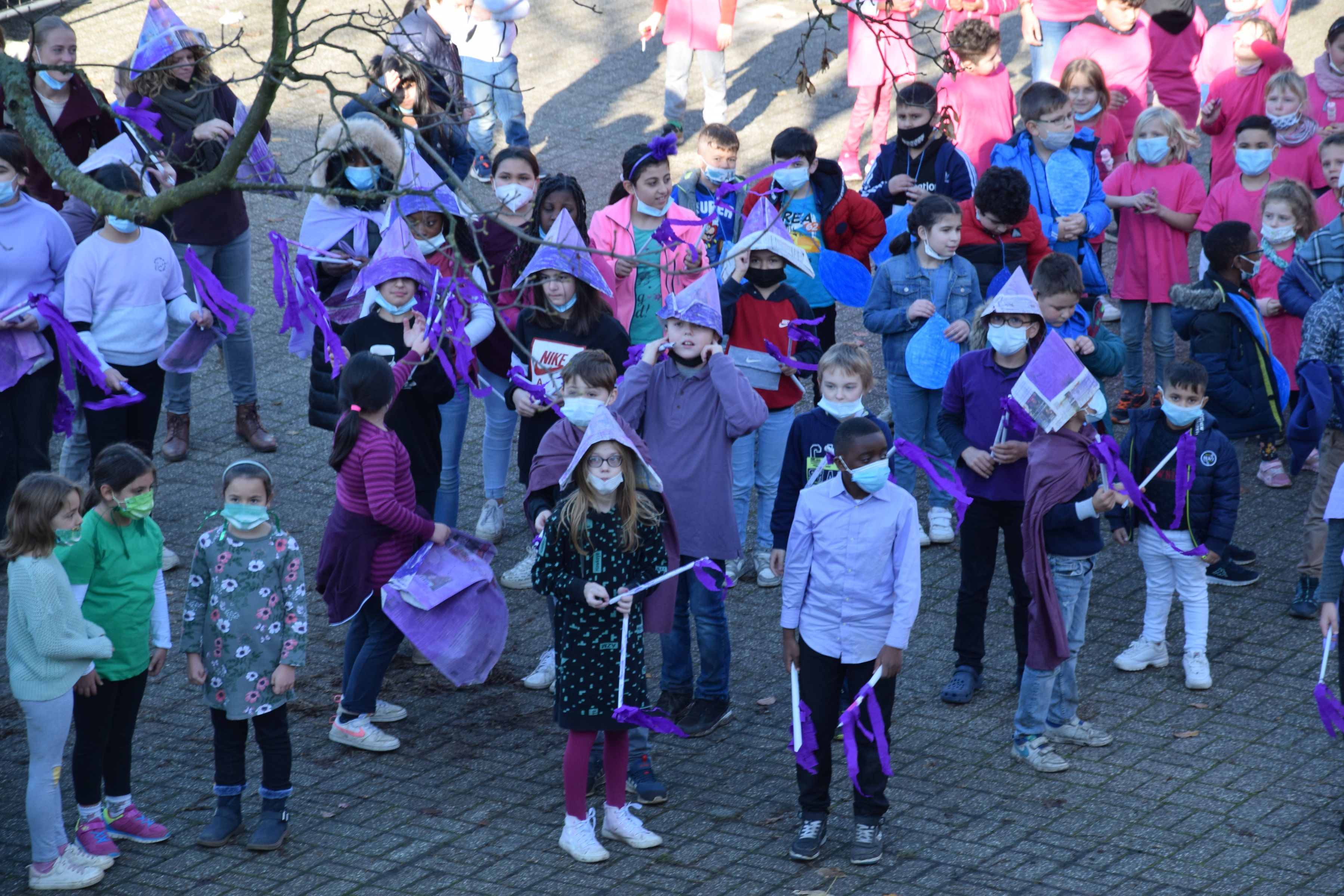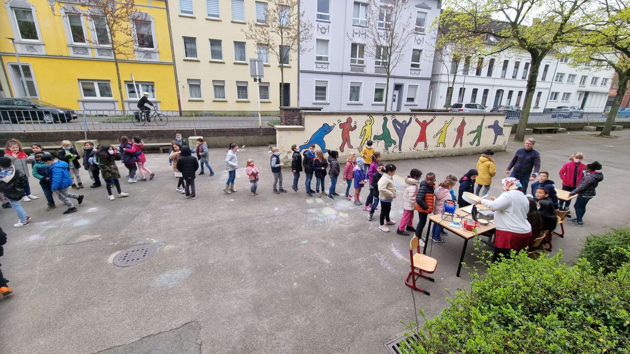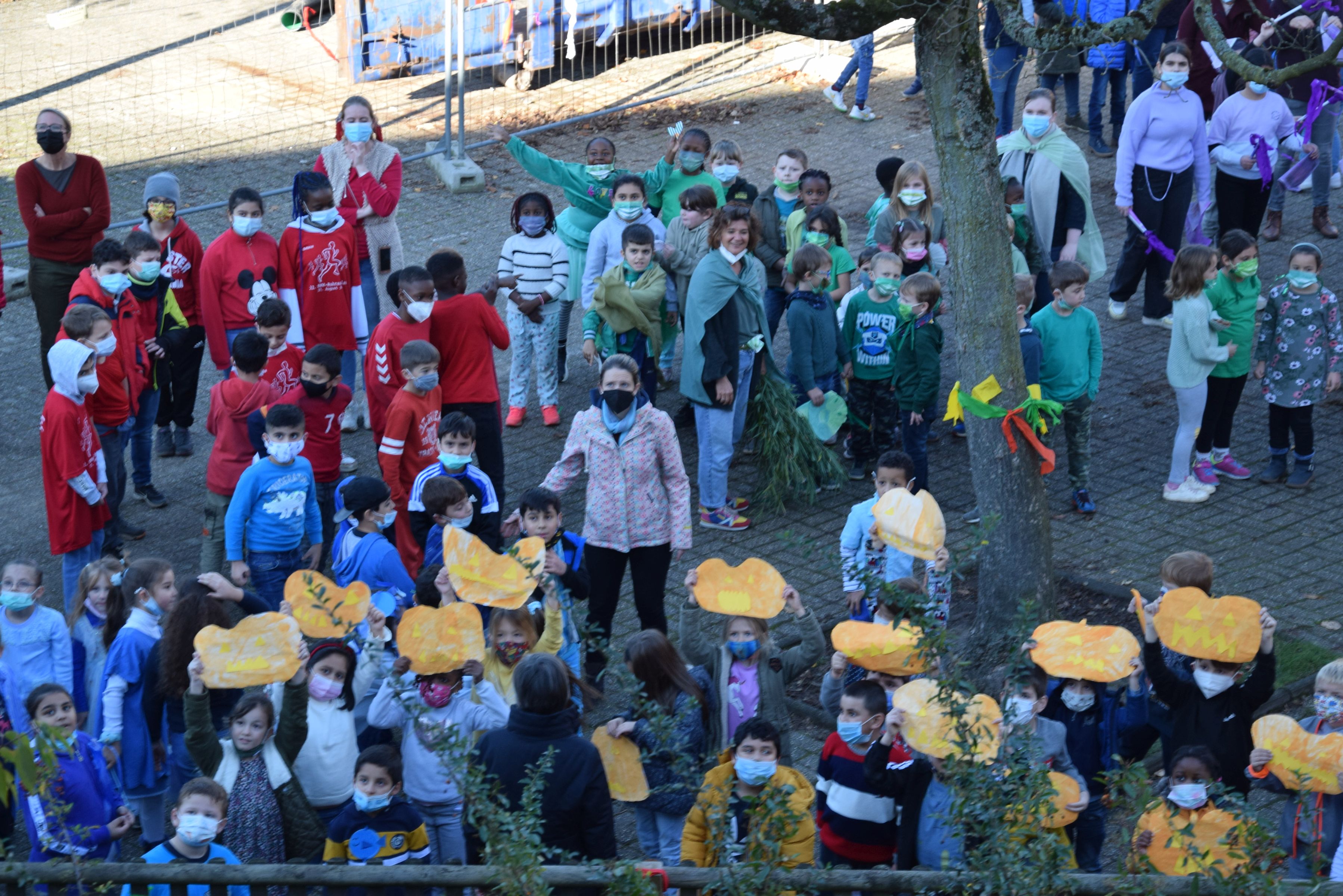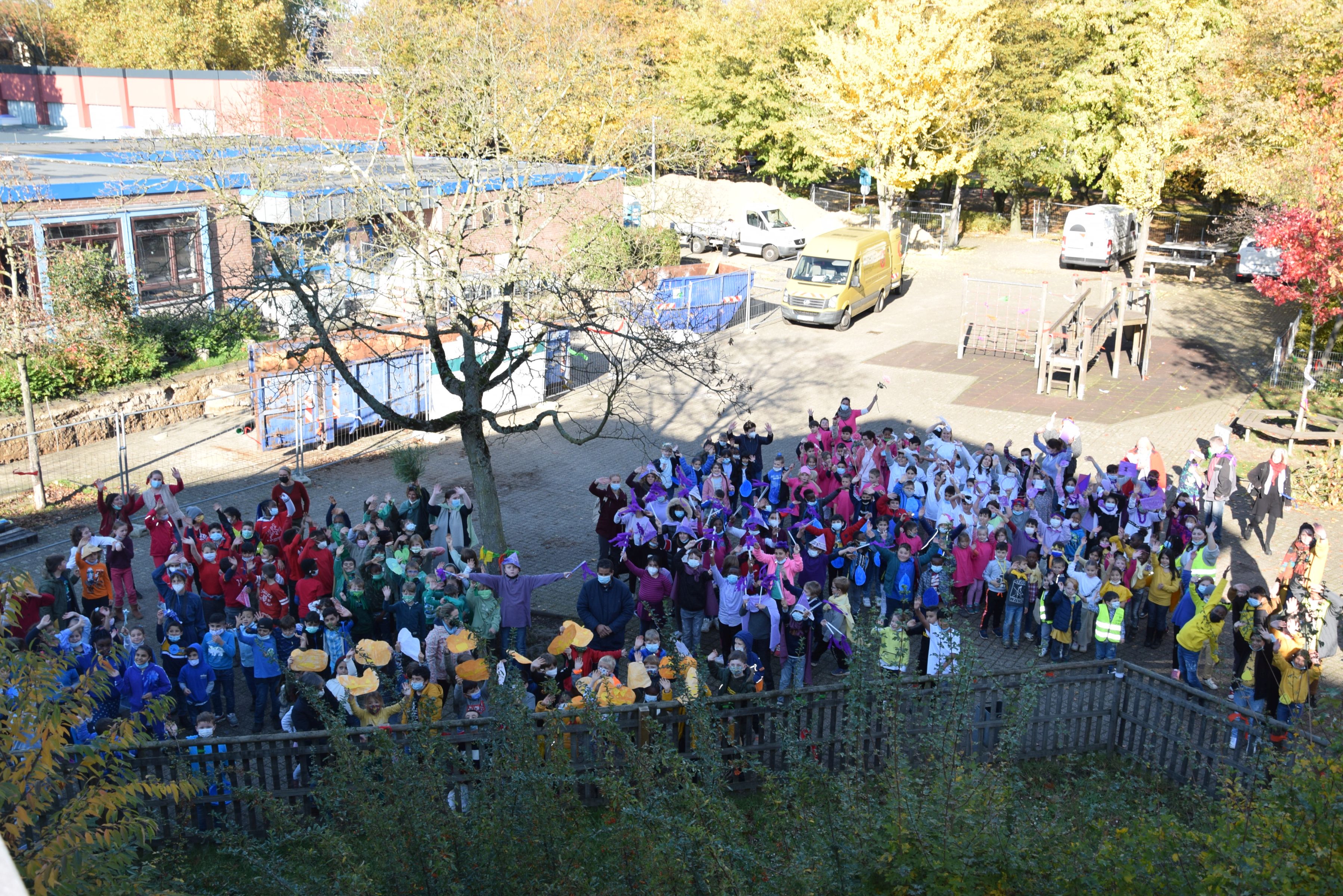Jeder Klasse wurde eine Farbe zugeordnet und so gab es ein buntes Durcheinander auf den Schulhöfen.