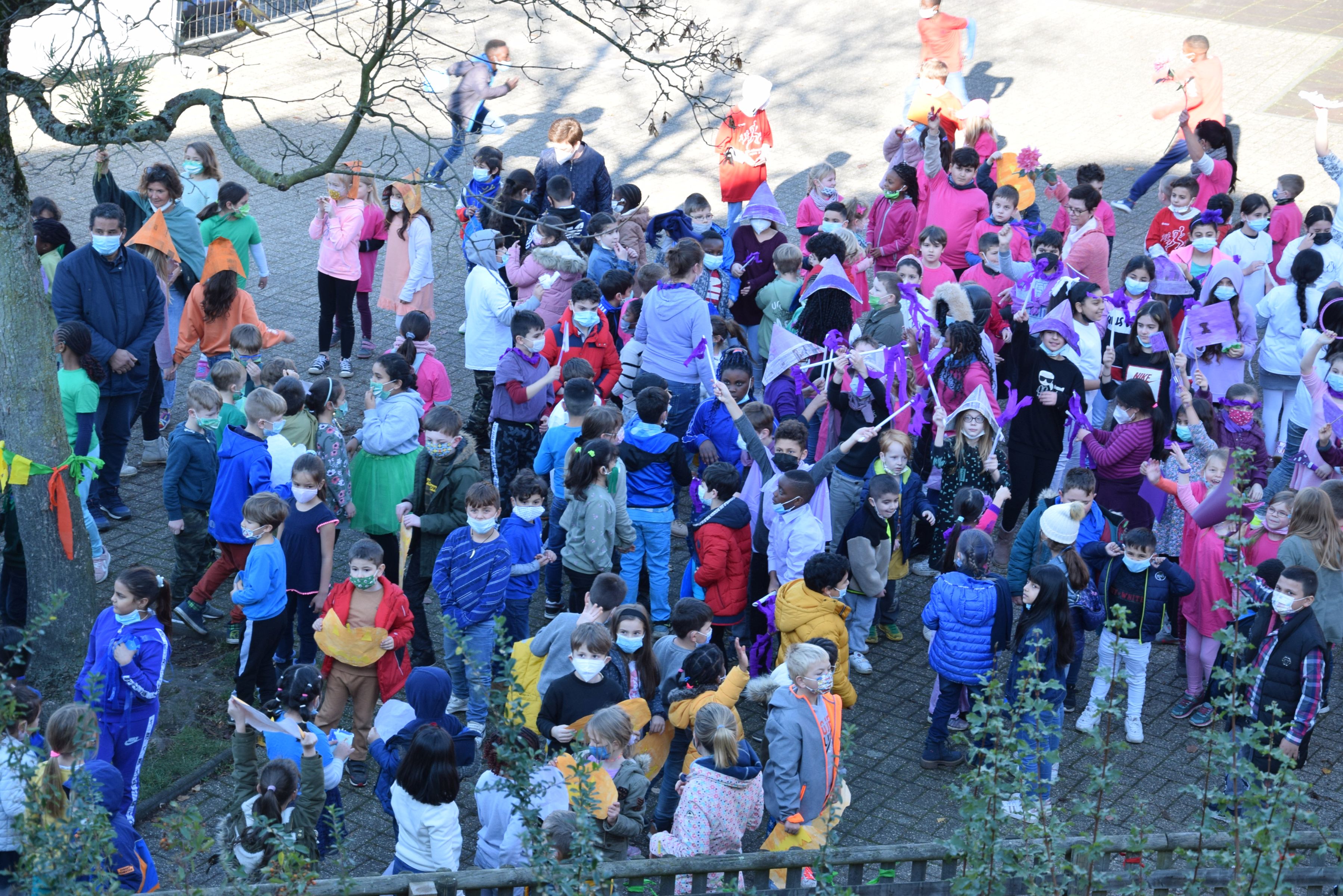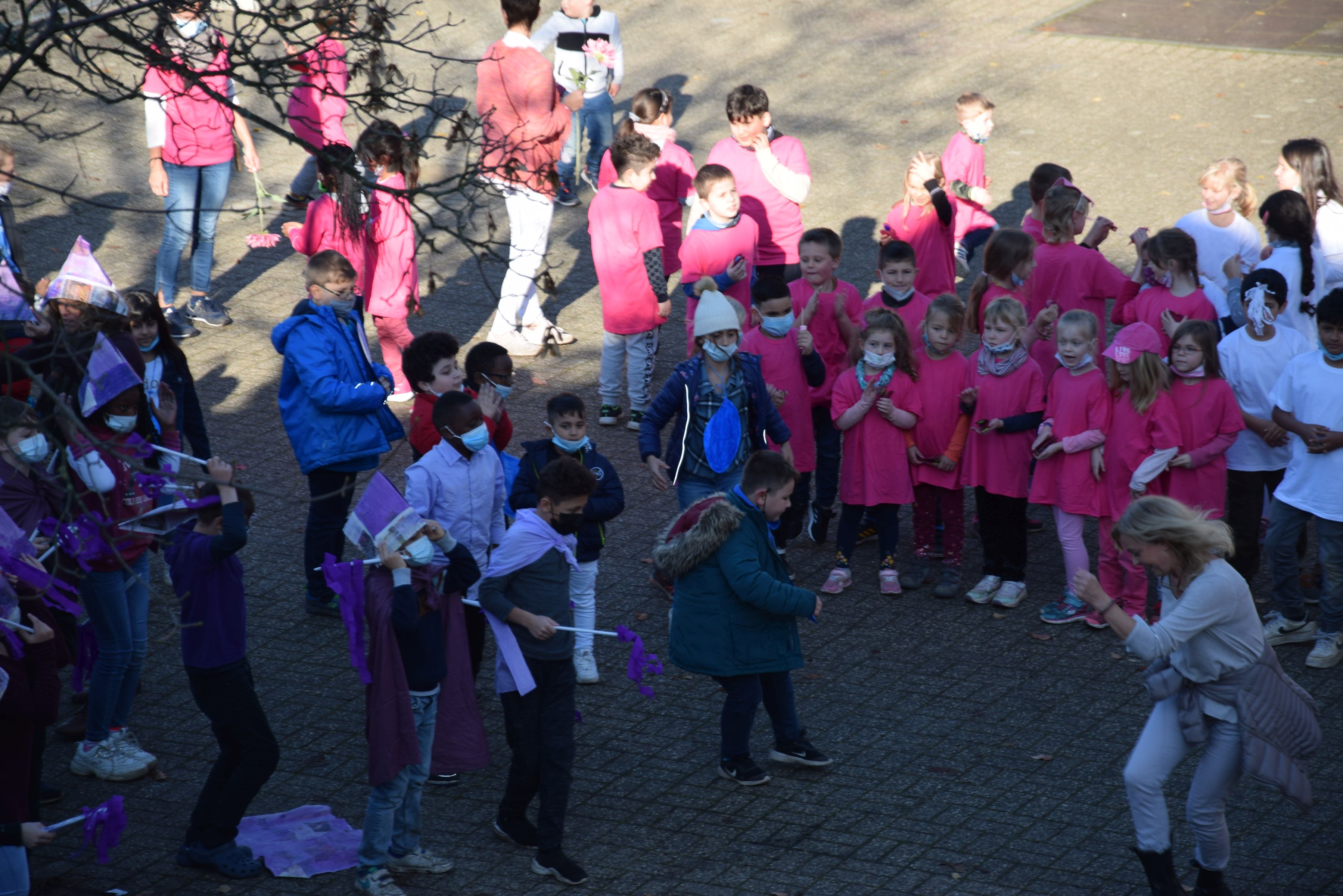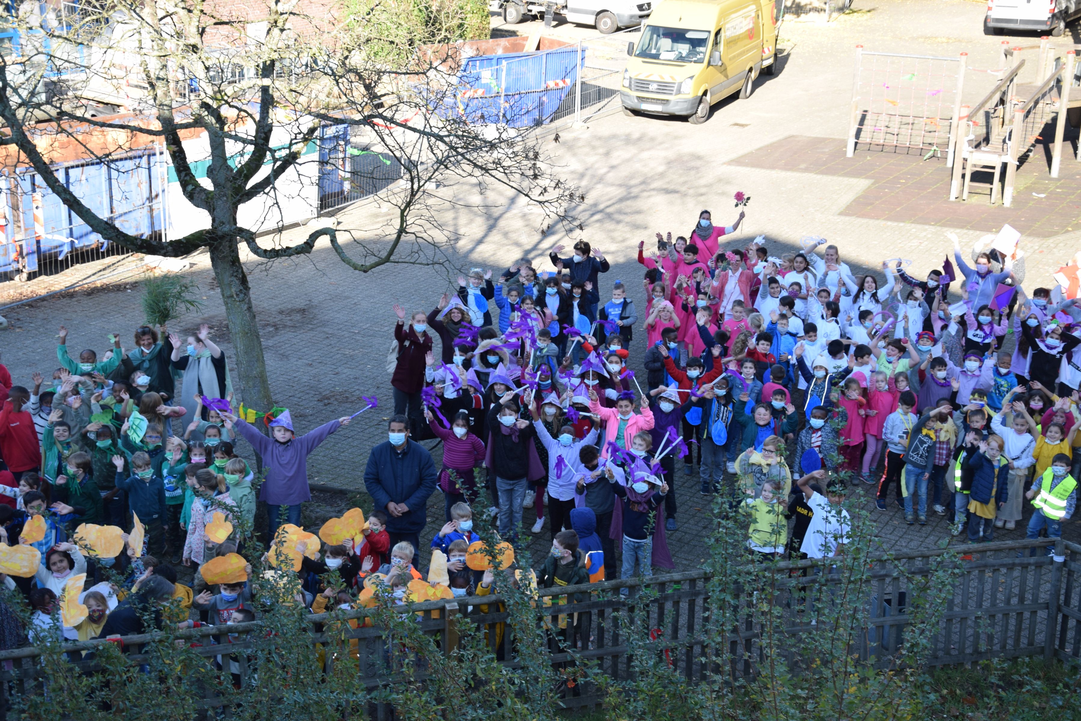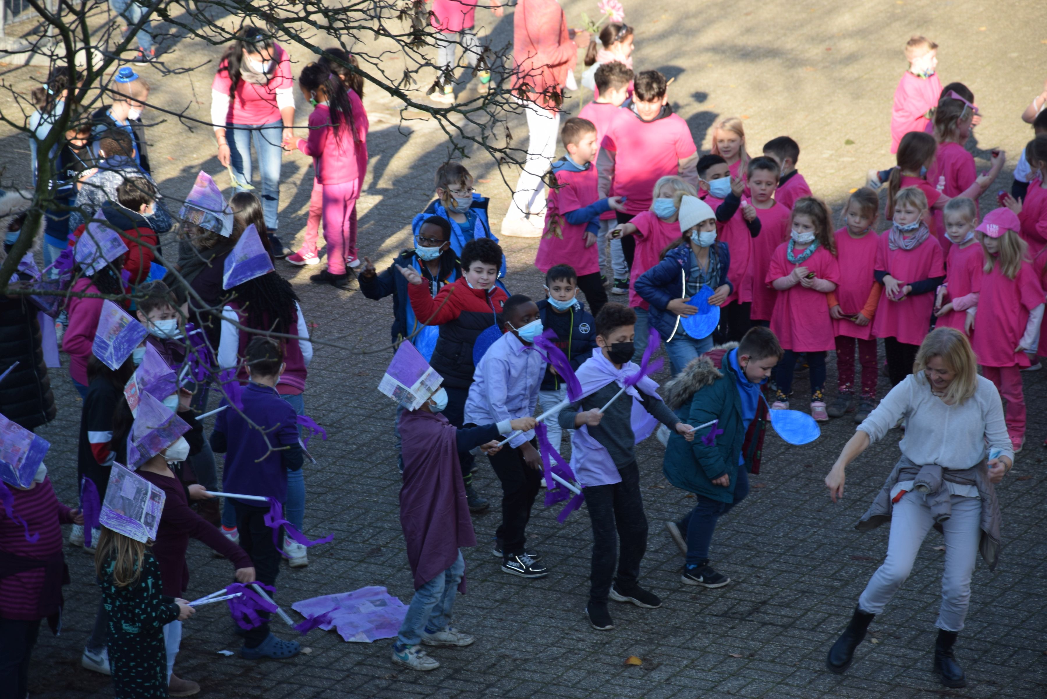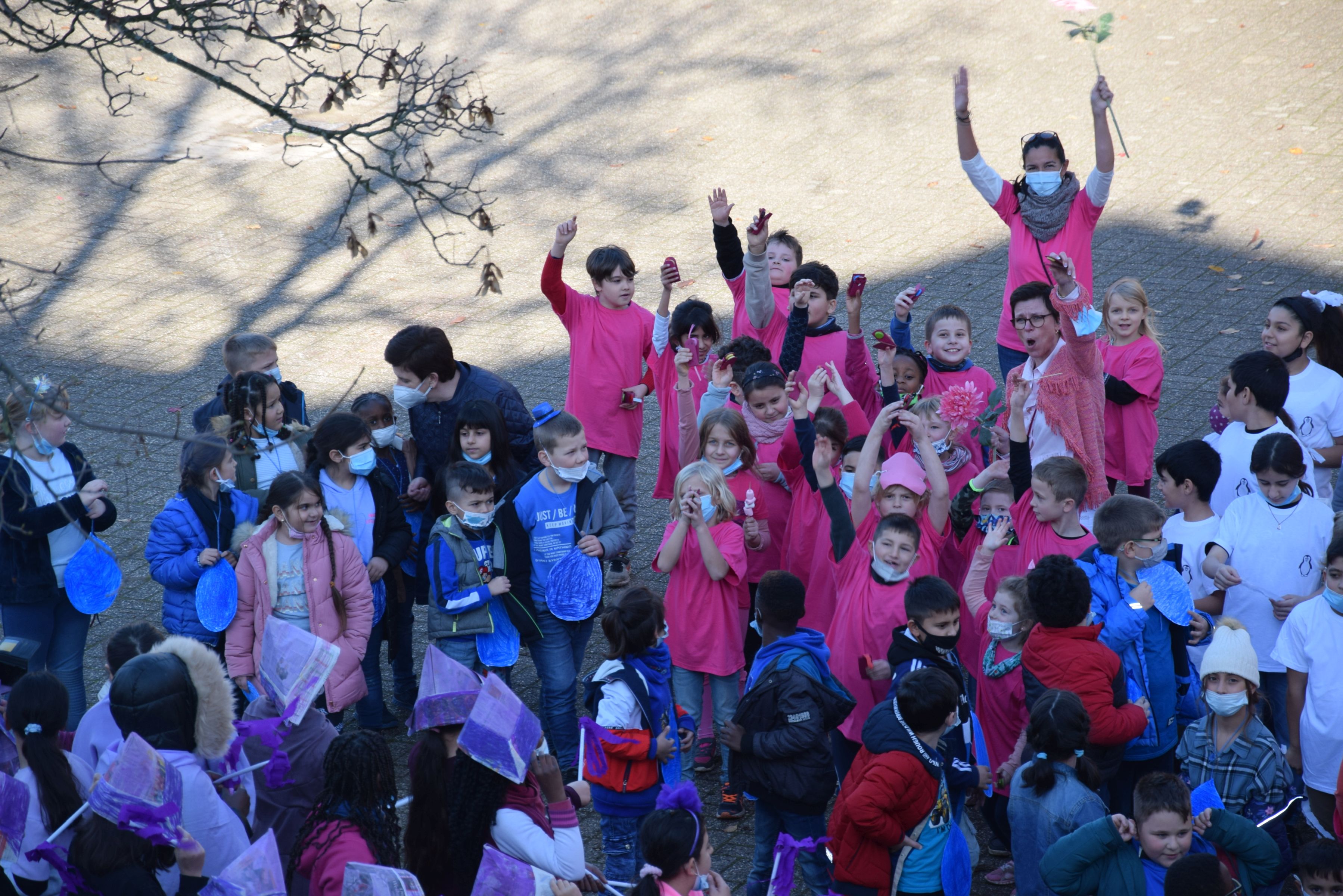 Jeder Klasse wurde eine Farbe zugeordnet und so gab es ein buntes Durcheinander auf den Schulhöfen.