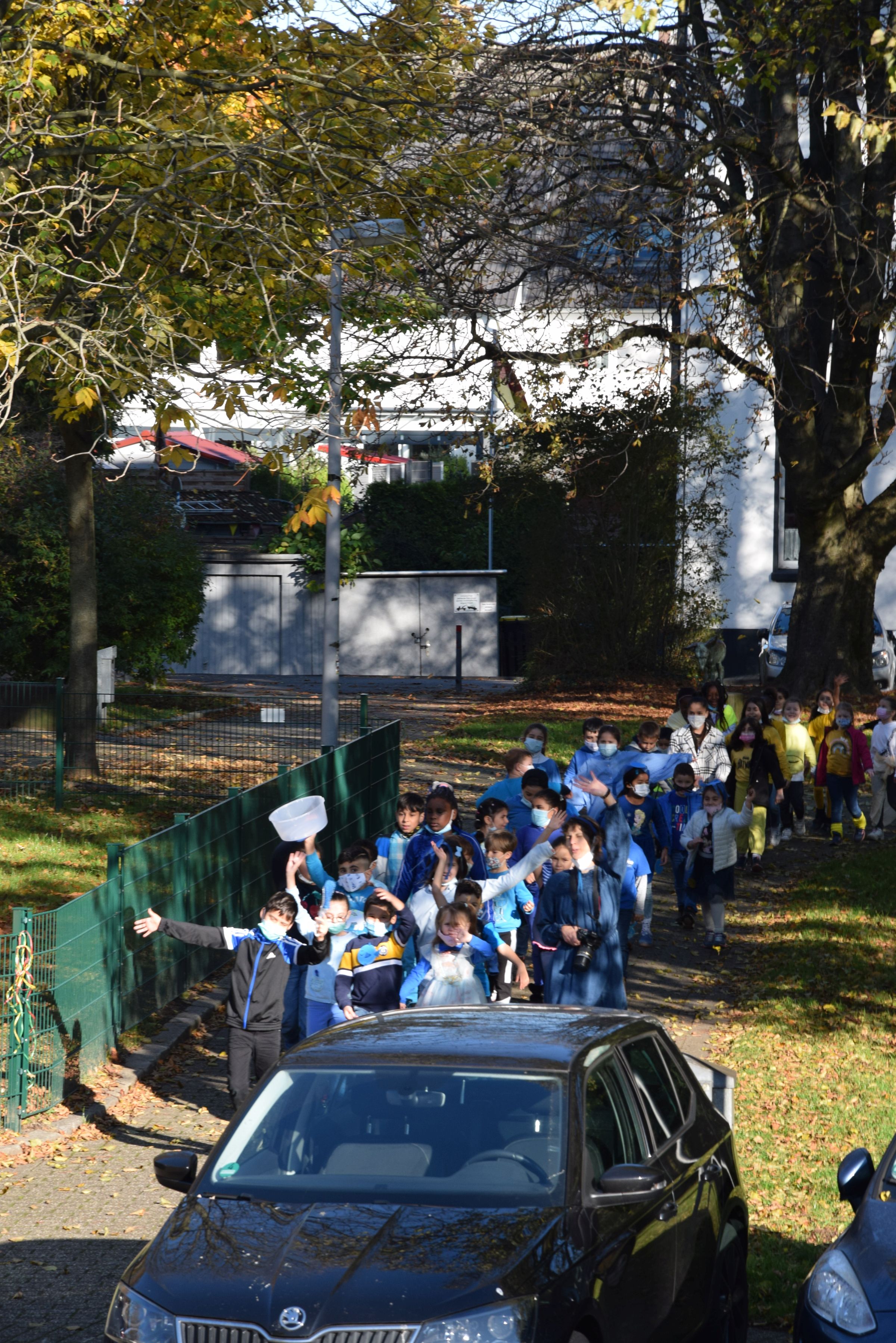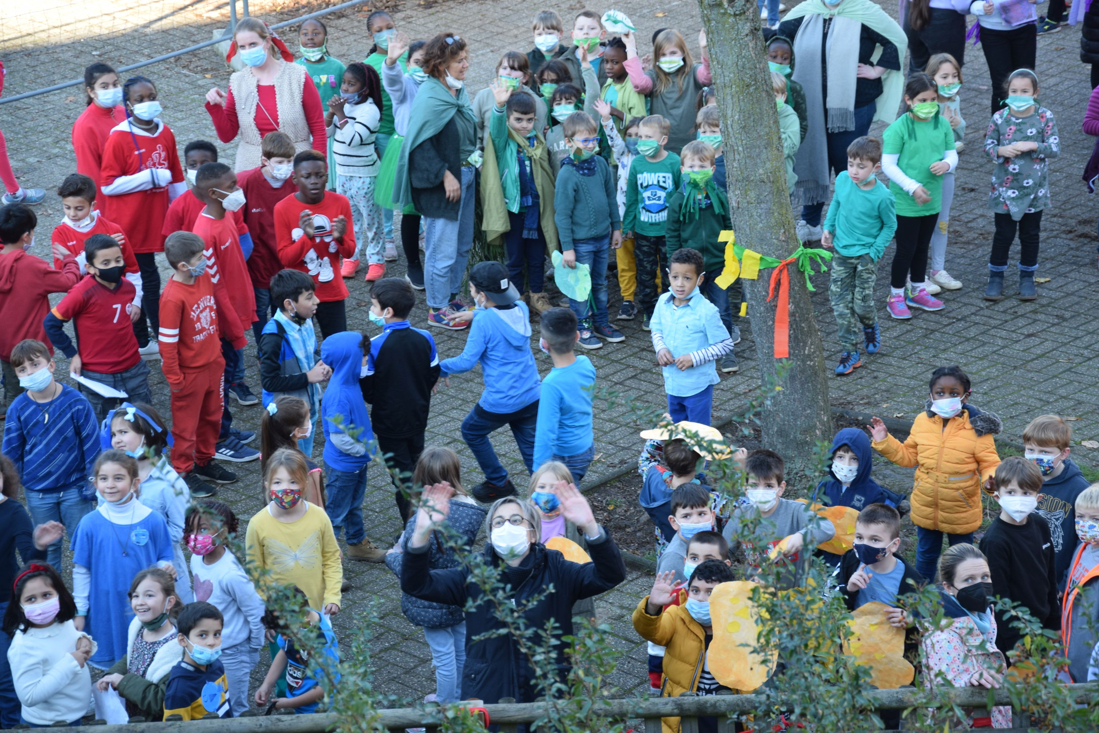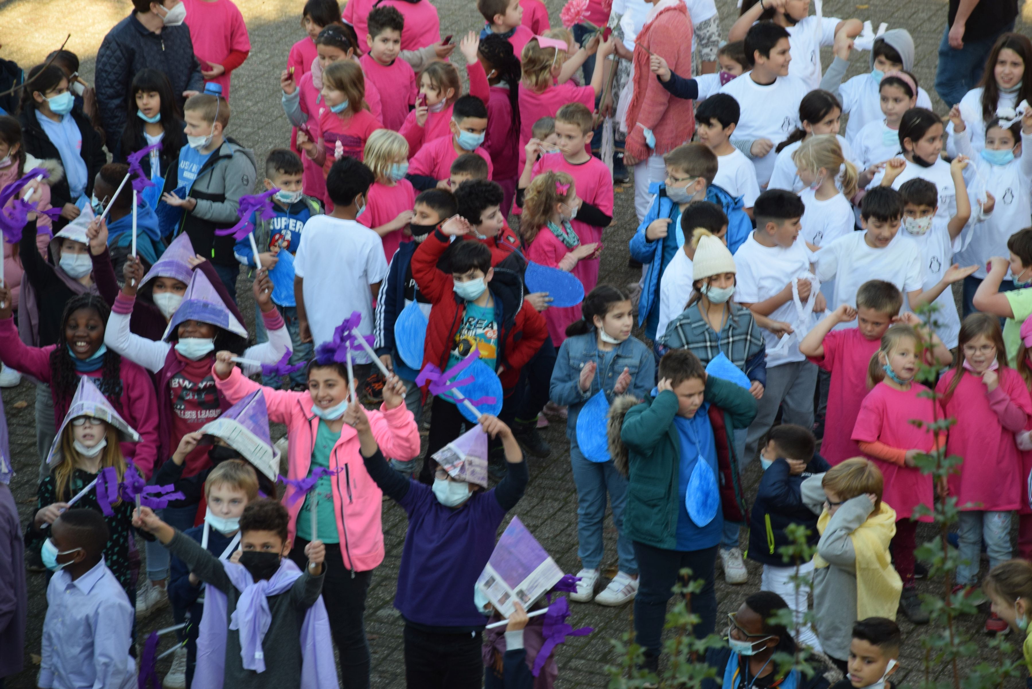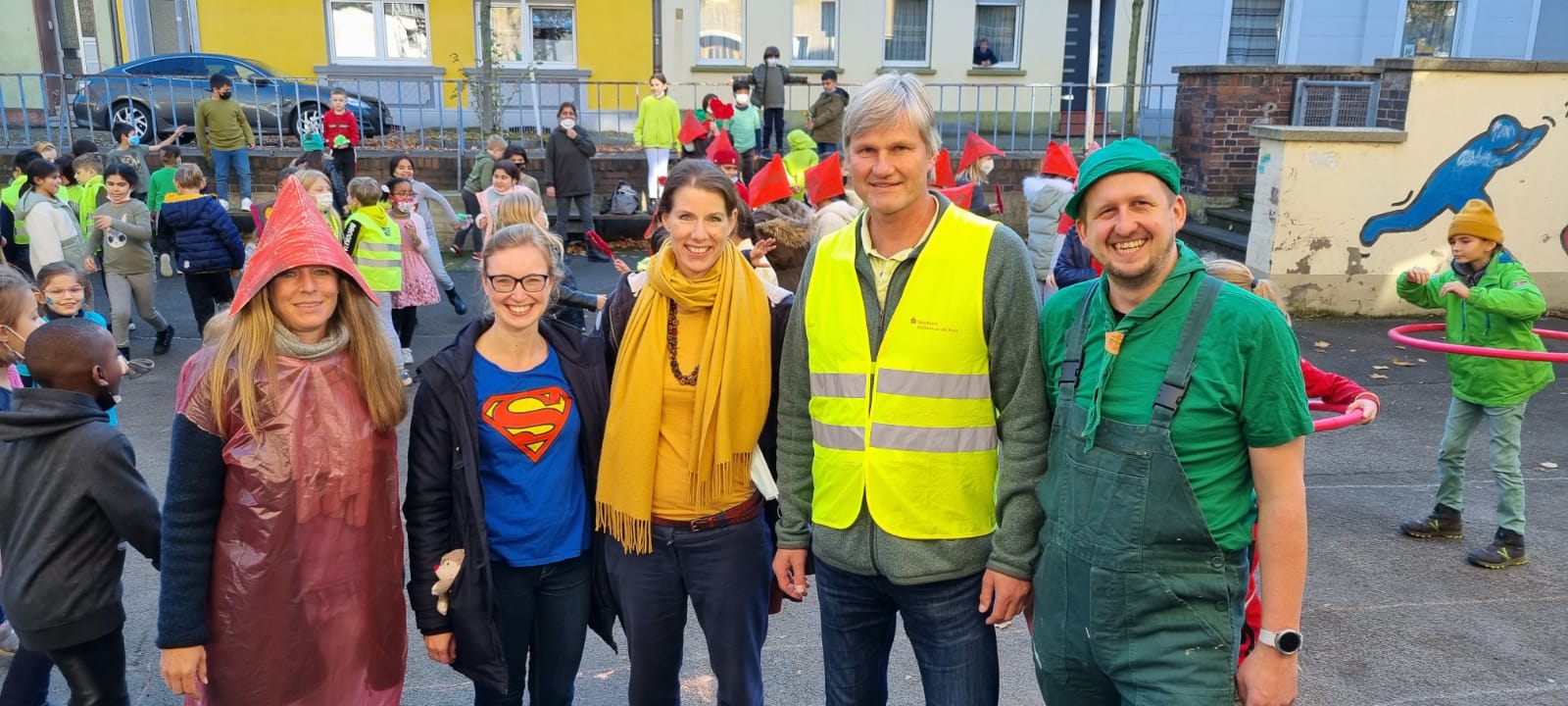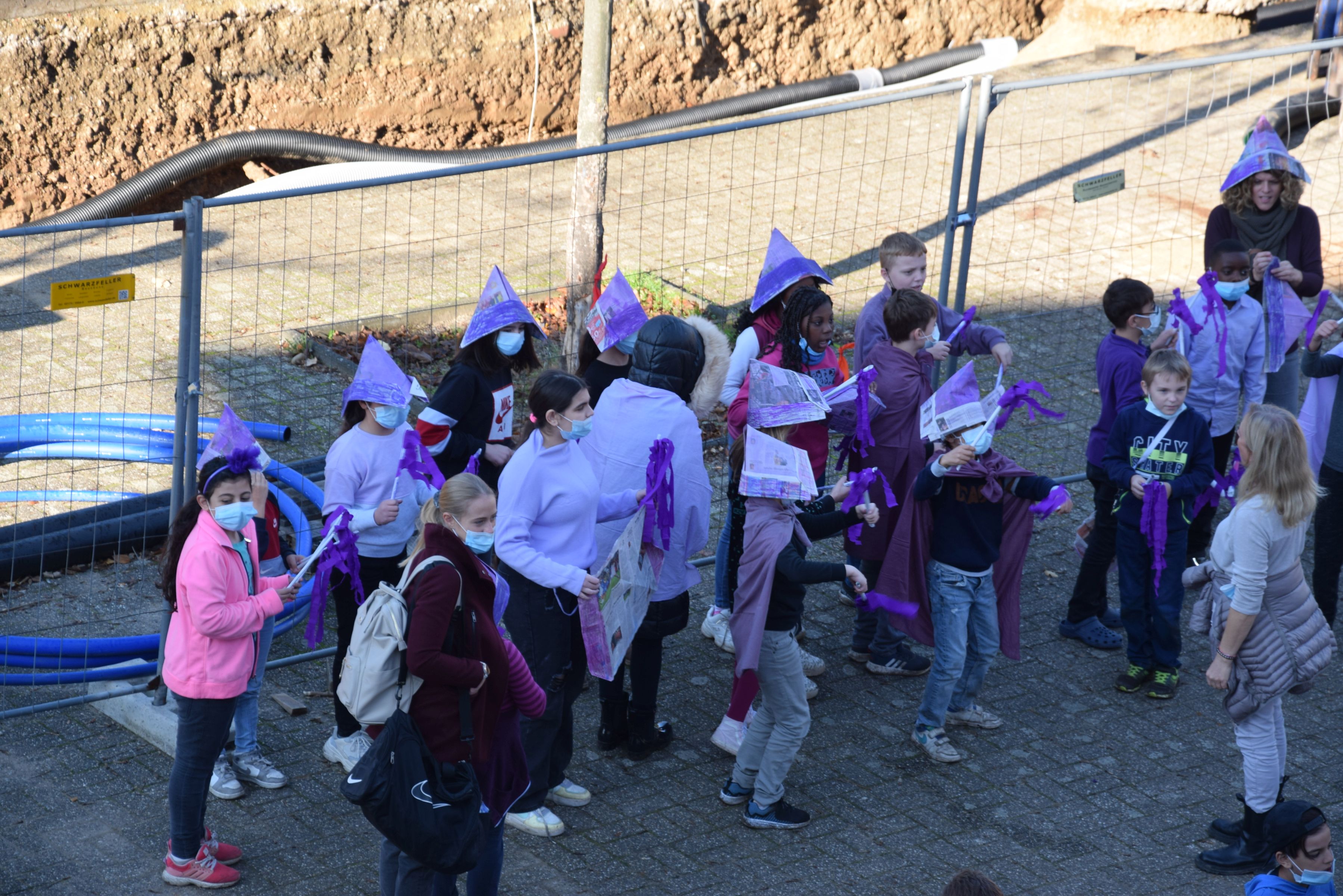 Jeder Klasse wurde eine Farbe zugeordnet und so gab es ein buntes Durcheinander auf den Schulhöfen.