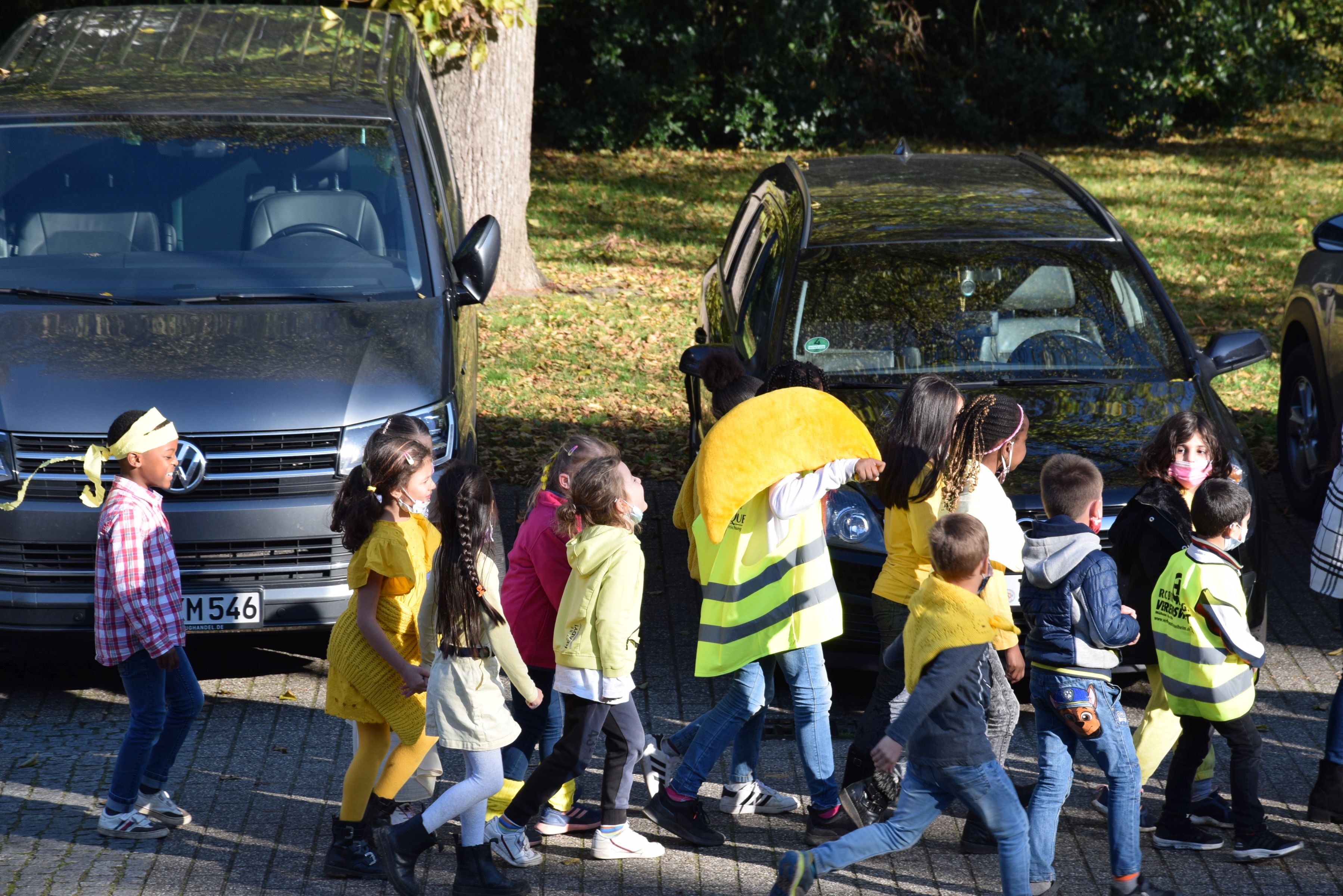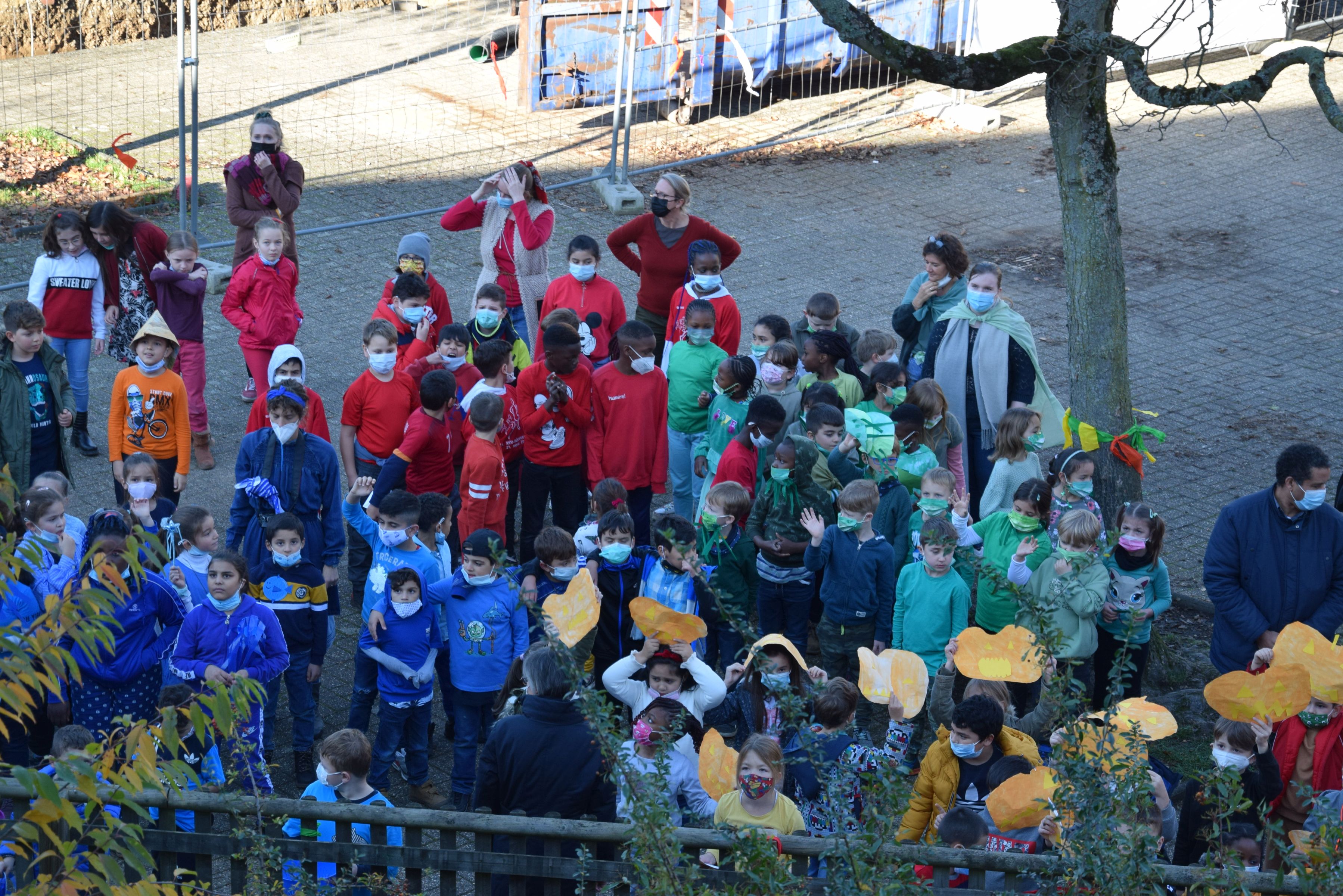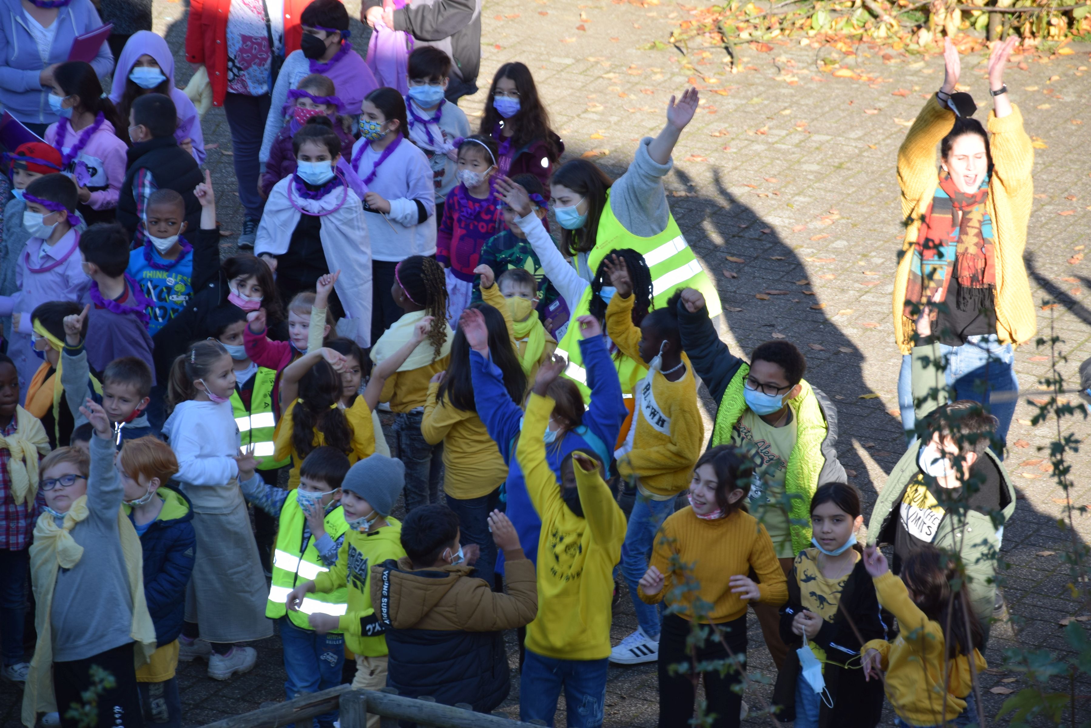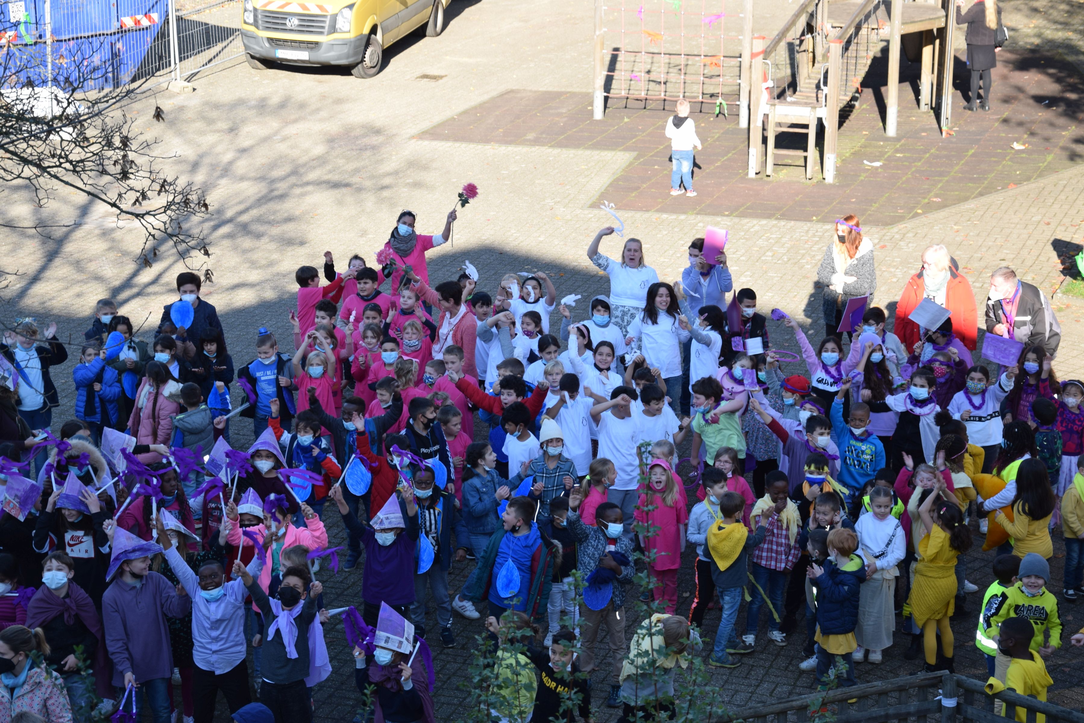 Jeder Klasse wurde eine Farbe zugeordnet und so gab es ein buntes Durcheinander auf den Schulhöfen.
