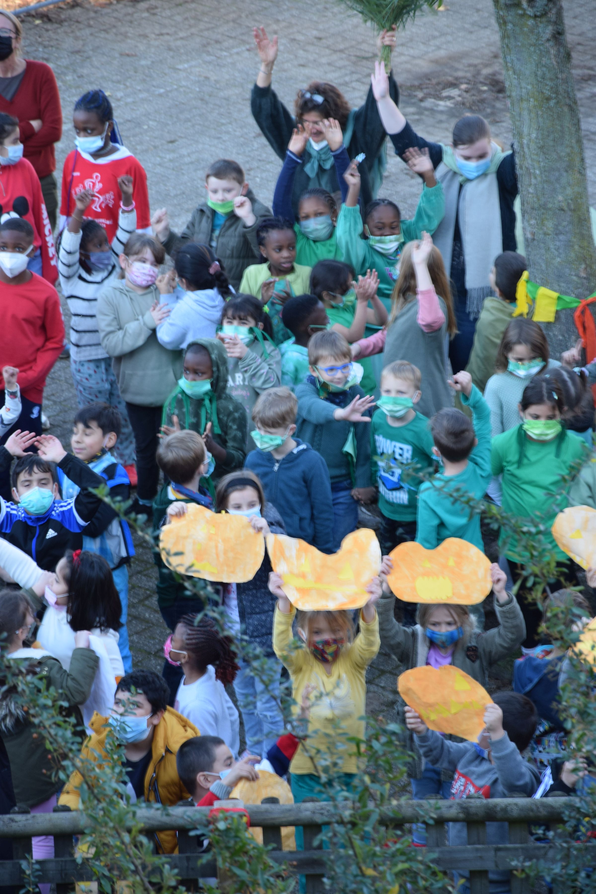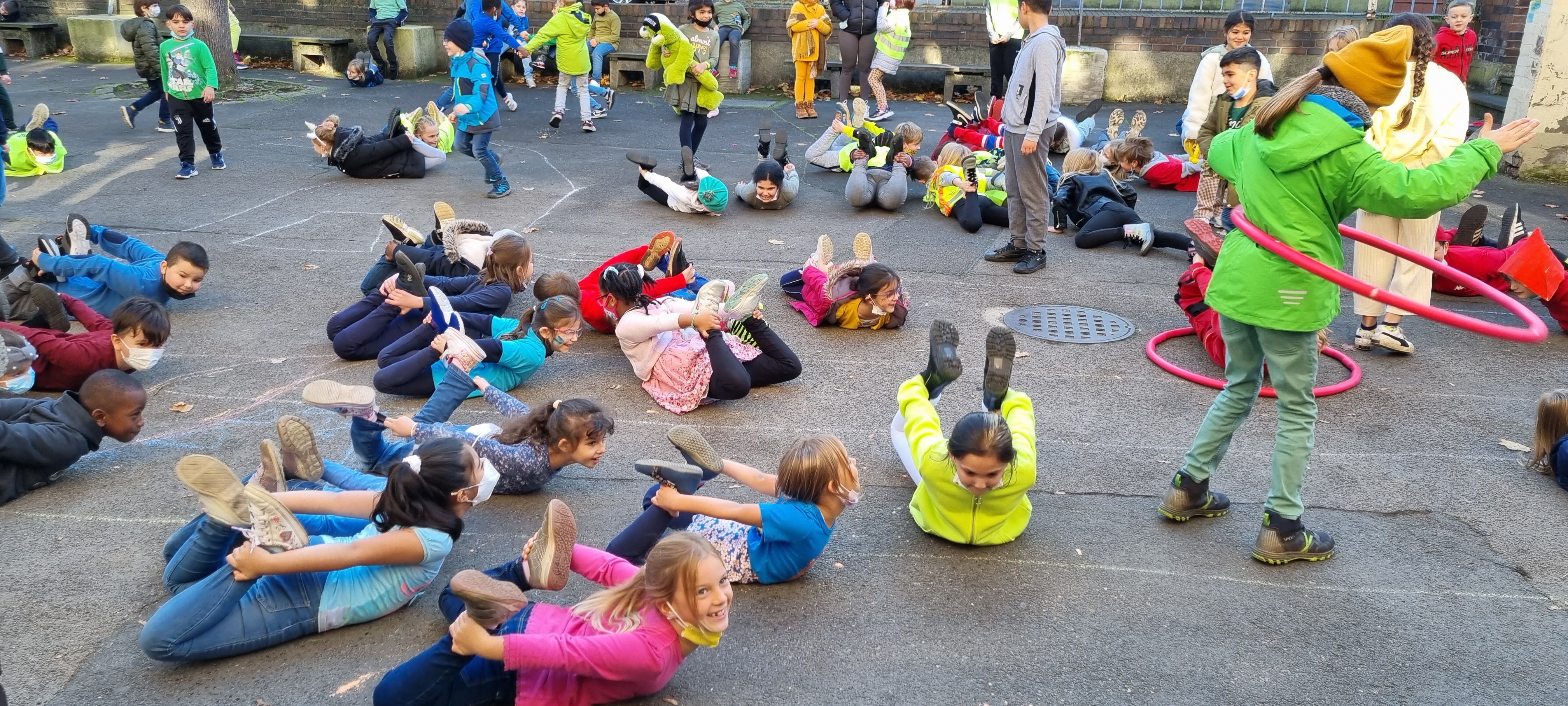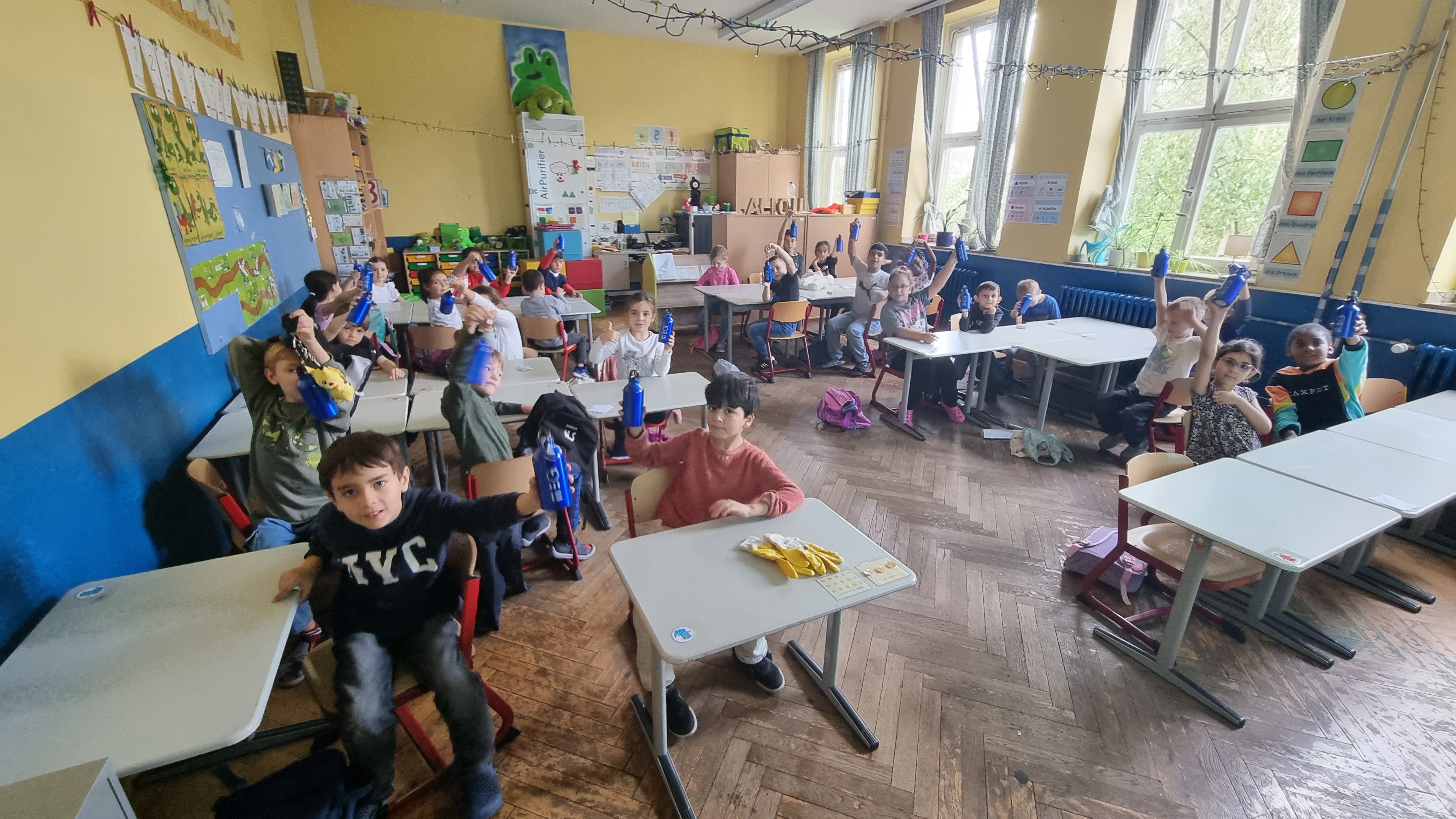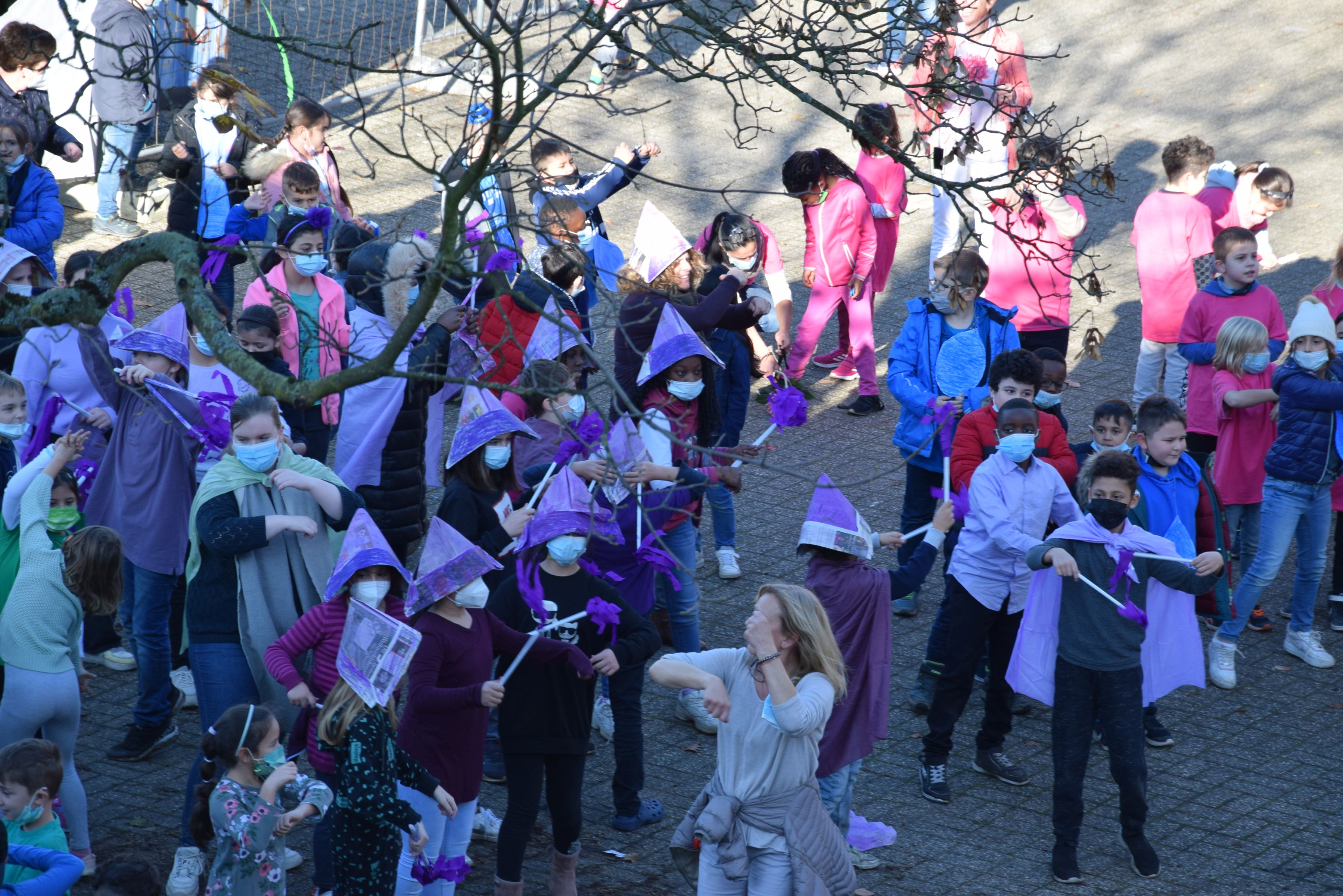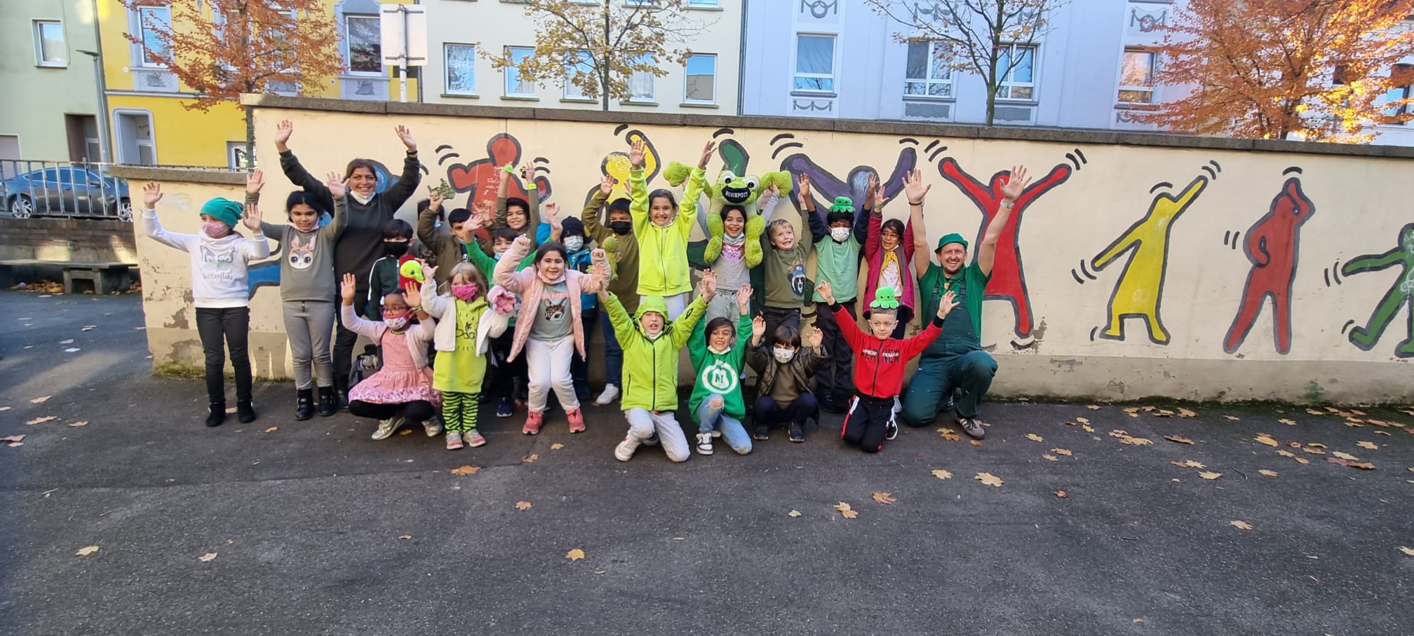 Jeder Klasse wurde eine Farbe zugeordnet und so gab es ein buntes Durcheinander auf den Schulhöfen.