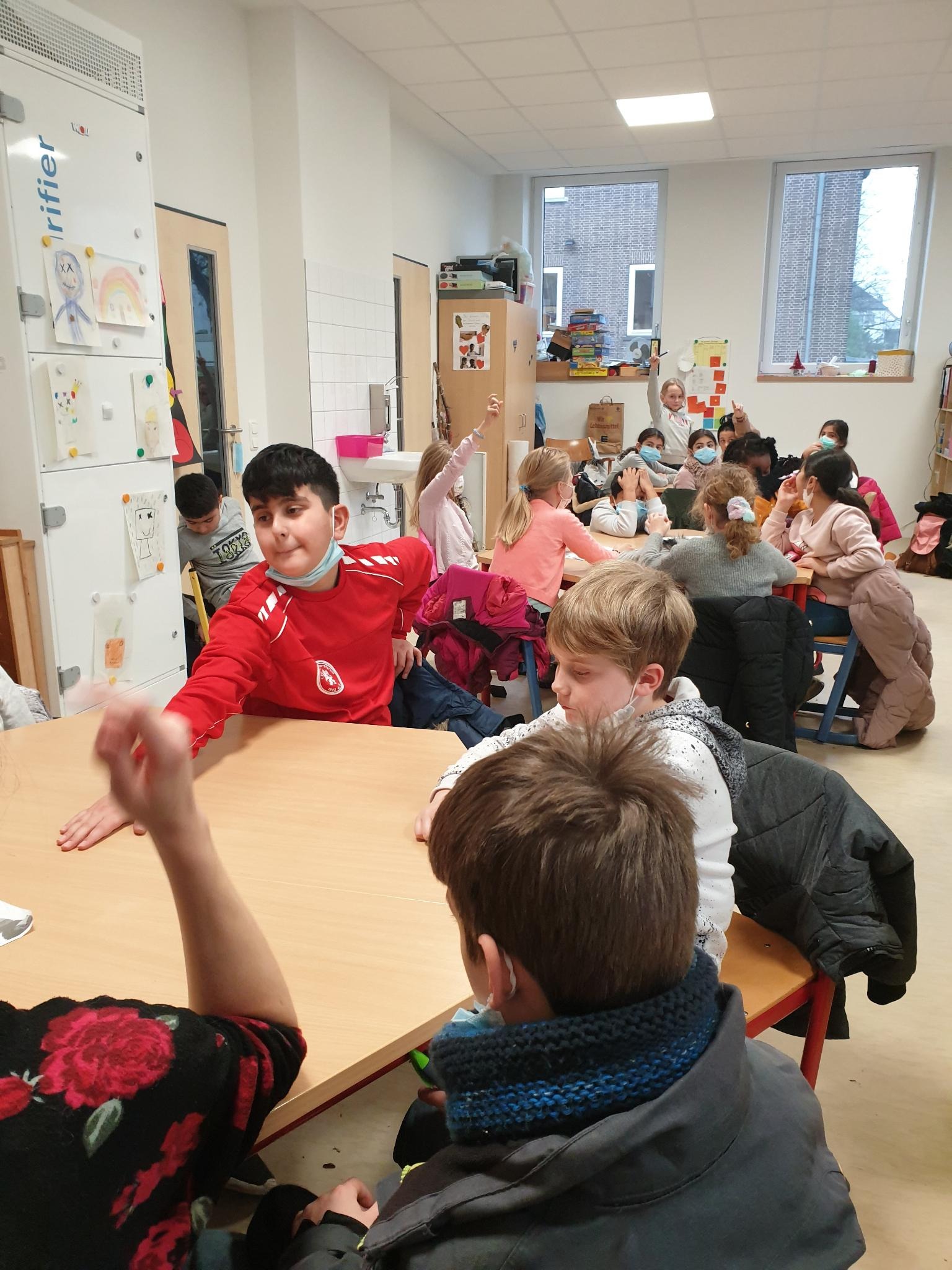 Durch diese Fragen kamen die Kinder super ins Gespräch und haben sich über Gemeinsamkeiten und Unterschiede ausgetauscht. So wurden auf Grundlage dessen „Freundschaftshände“ beschriftet. Dort haben die Kindern ihren Mitschülern positives Feedback gegeben und ihnen geschrieben was sie an ihnen toll finden. Für manche Kinder gab es dort auch überraschende Worte. Alle haben sich über das Feedback gefreut.