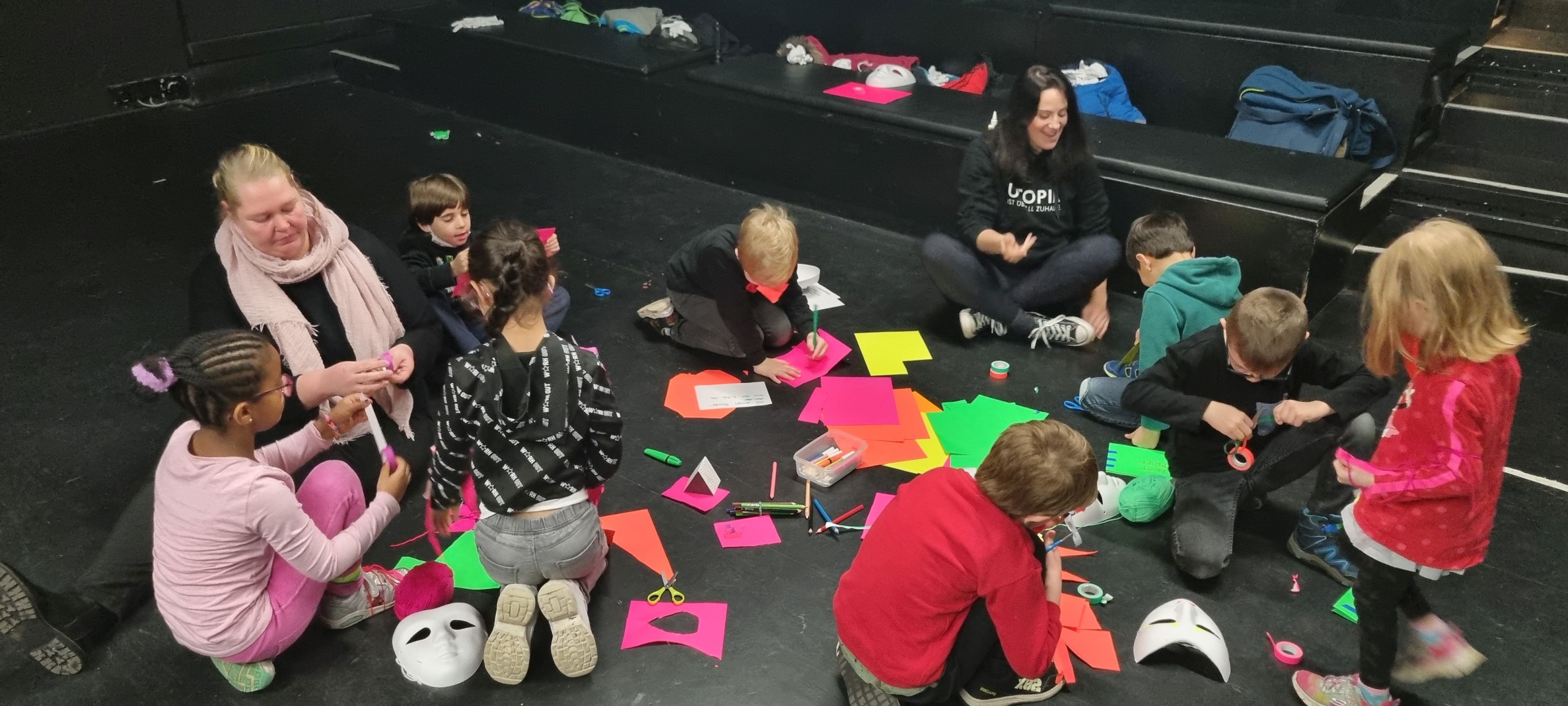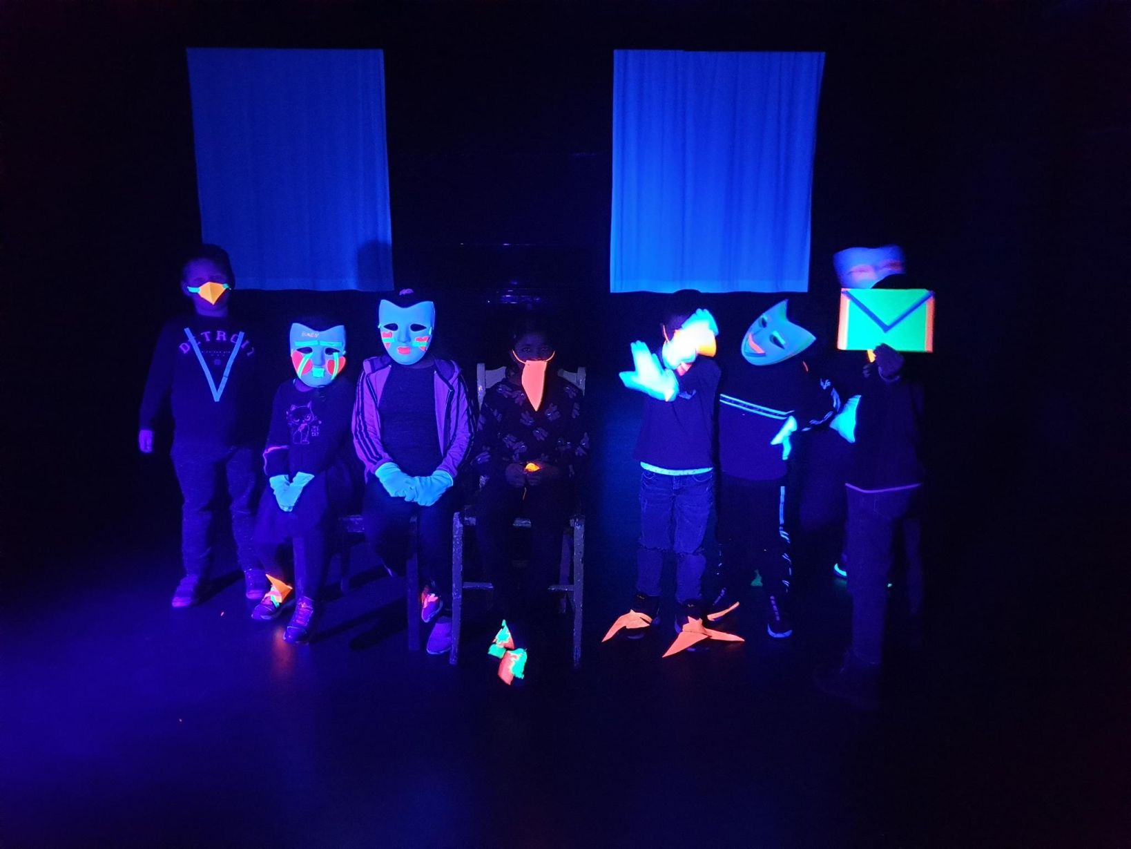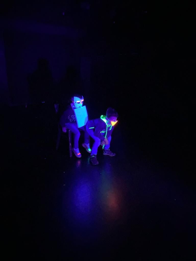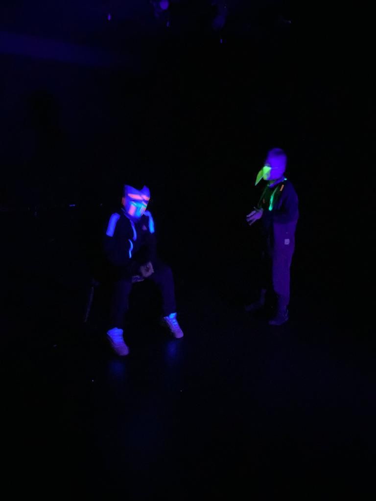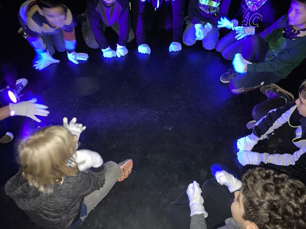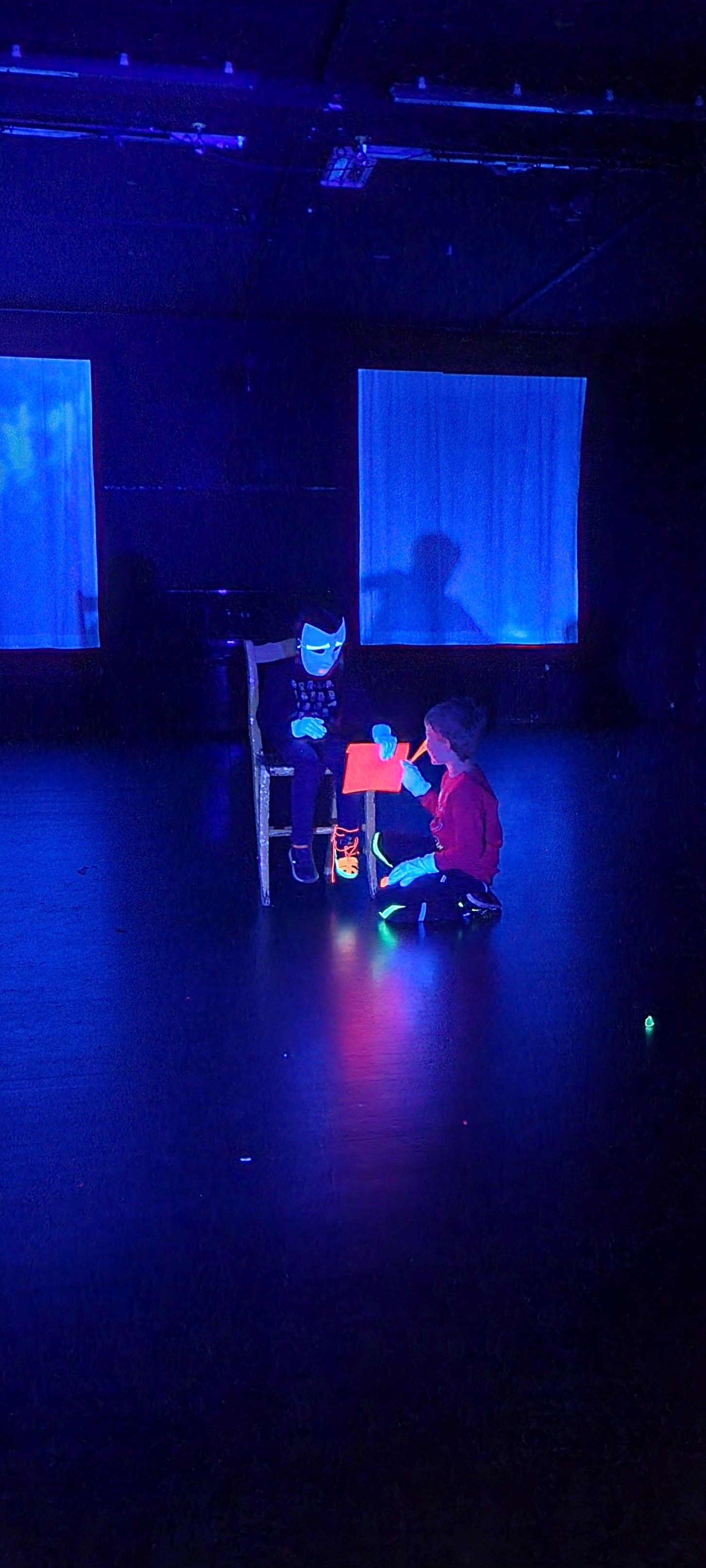 Heute haben die ersten Kleingruppen am Schwarzlichttheater-Workshop im Theater an der Ruhr teilgenommen.