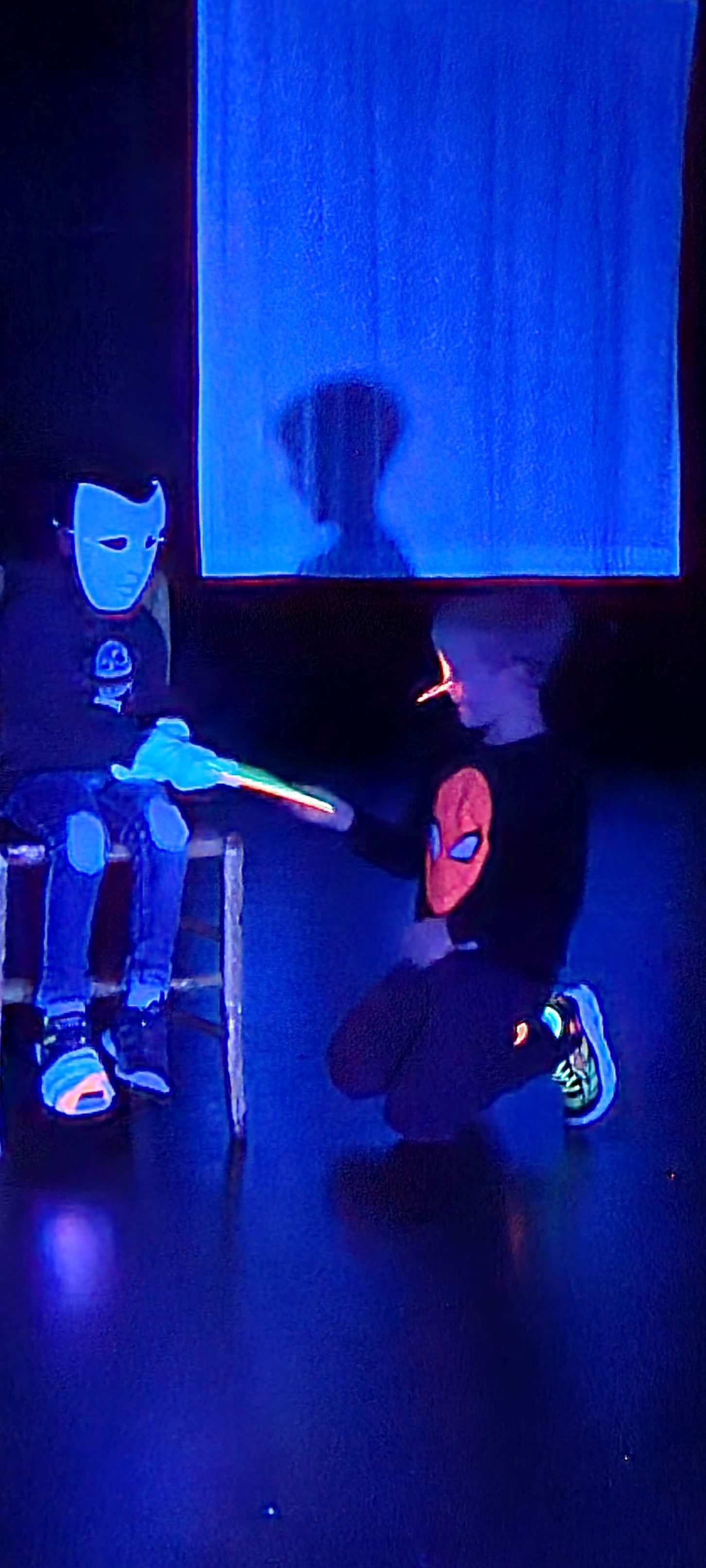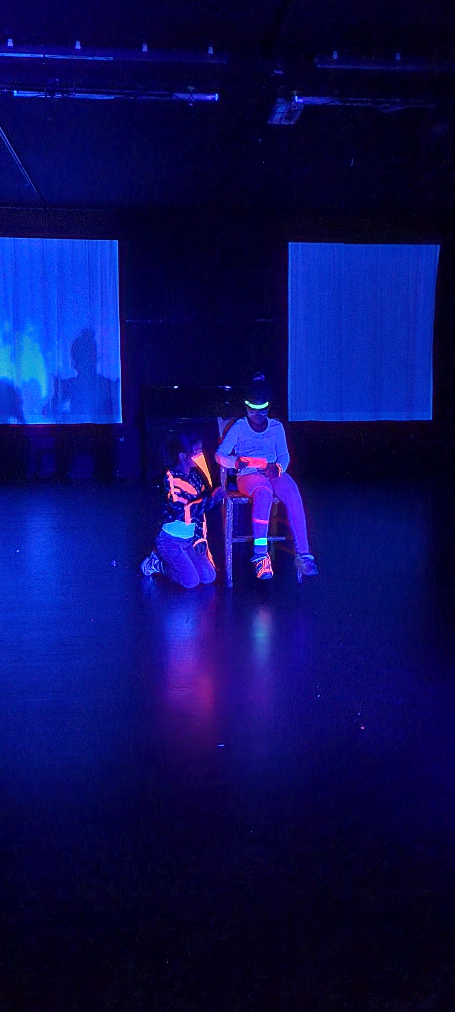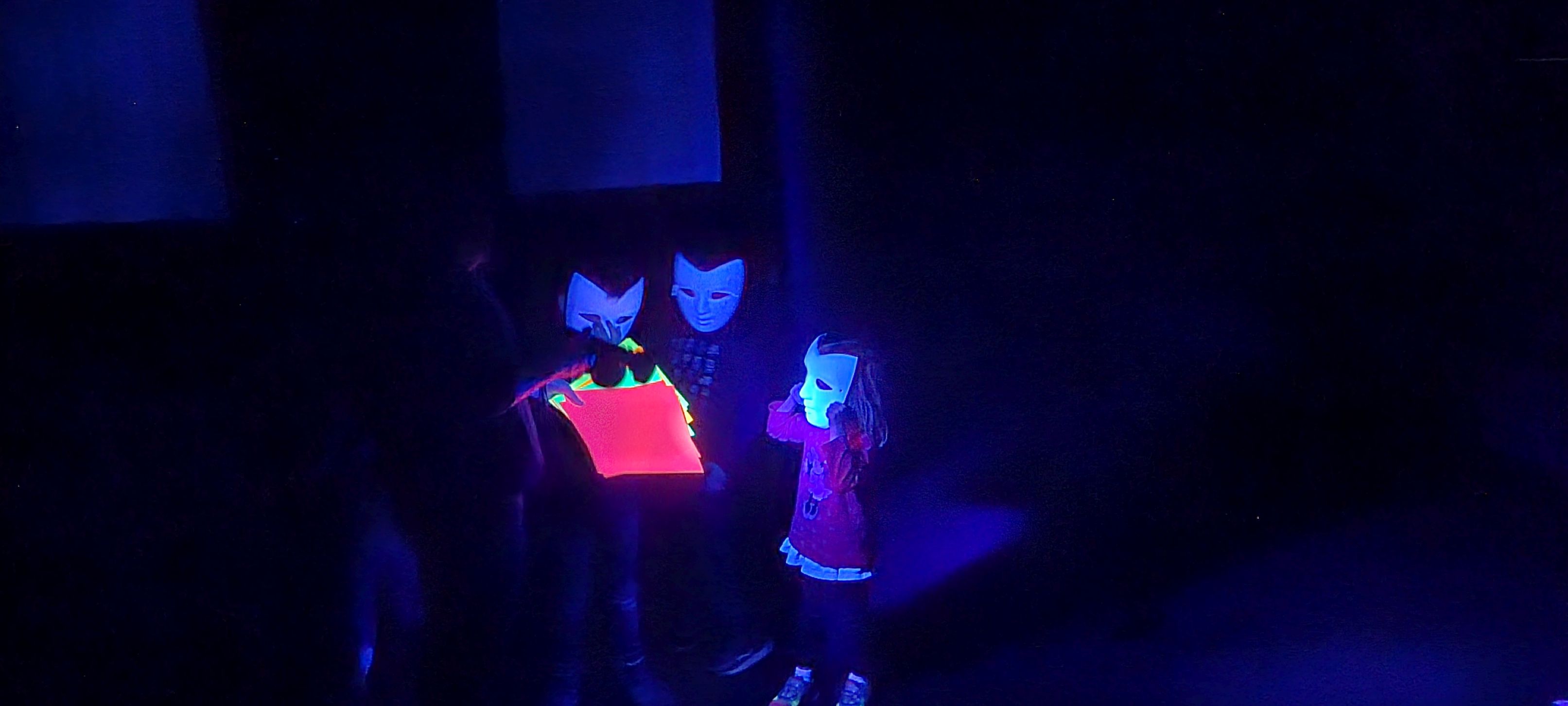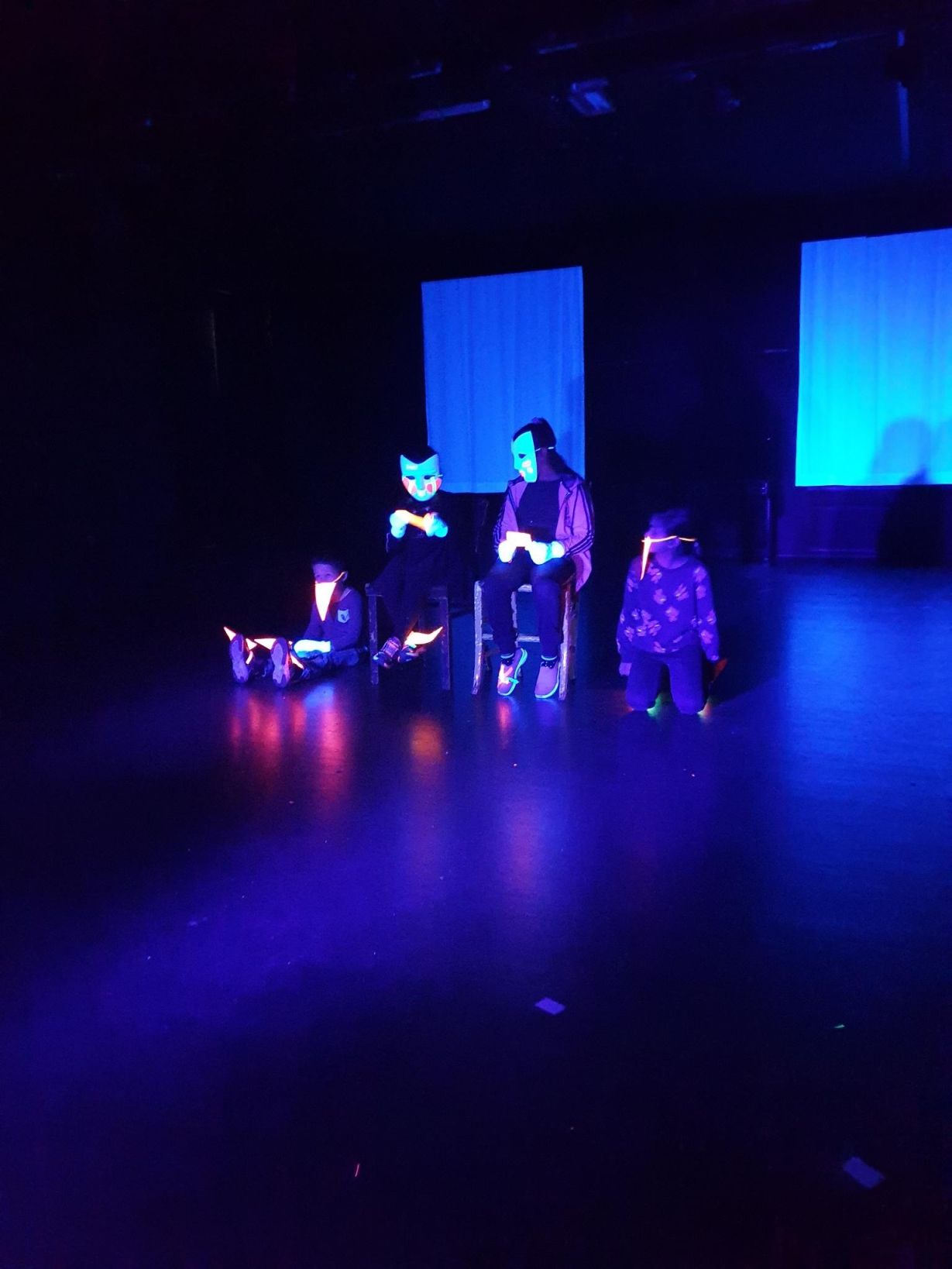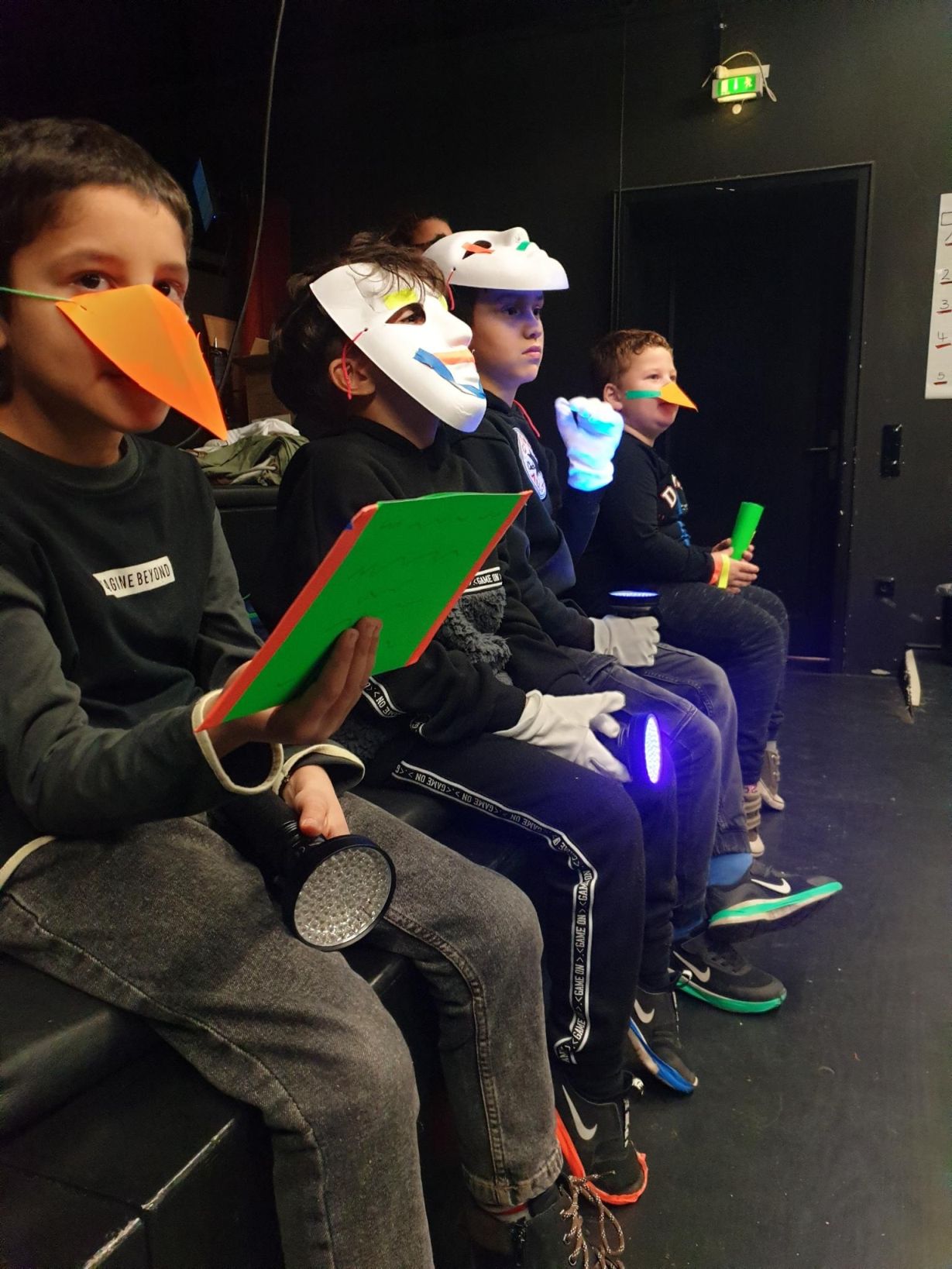 Heute haben die ersten Kleingruppen am Schwarzlichttheater-Workshop im Theater an der Ruhr teilgenommen.