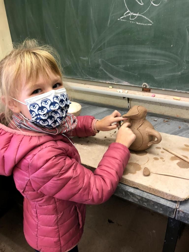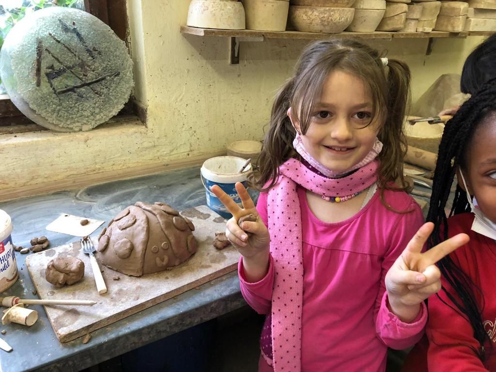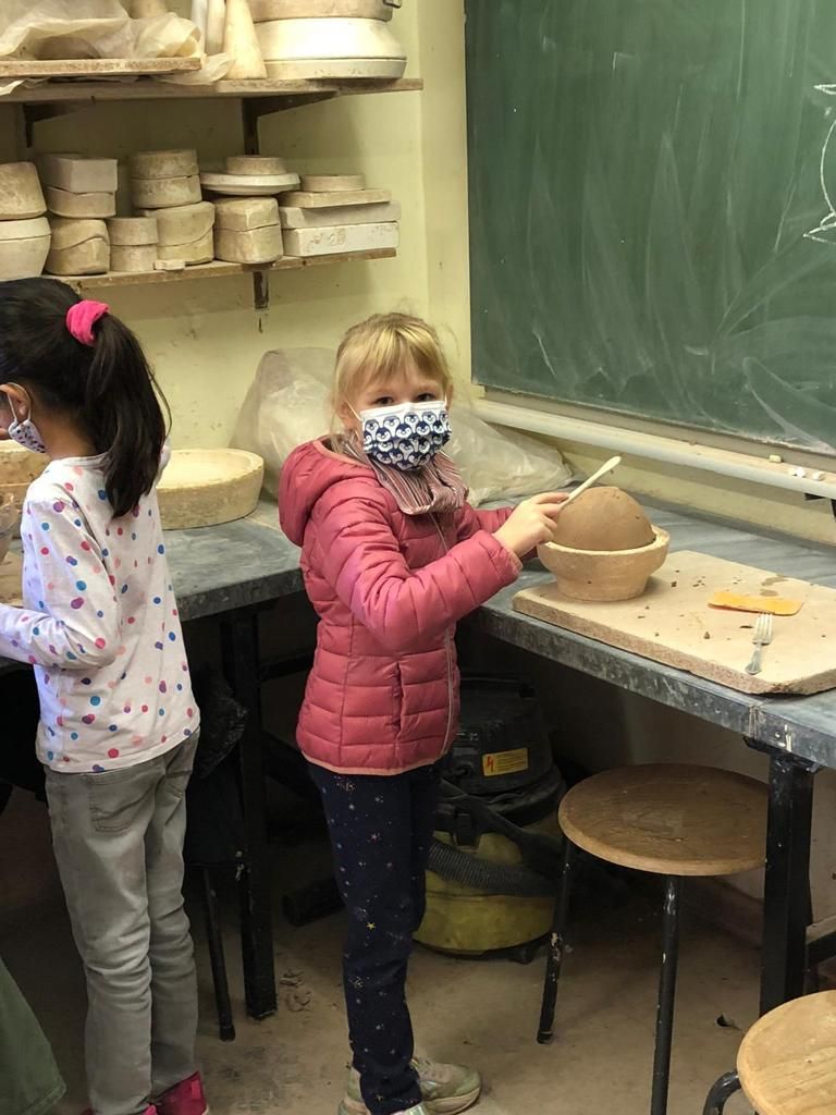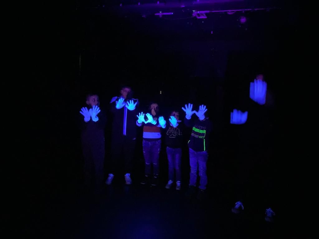 16.11.2021: Die Sterne Klasse war beim Töpfern und im Schwarzlichttheater