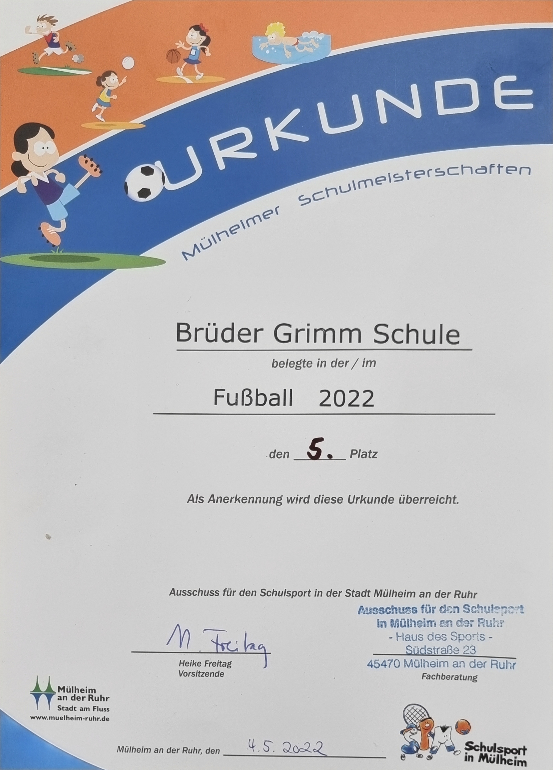Am 04.05.2022 erreichten die Fußballer der BGS den 5. Platz bei den Mülheimer Schulmeisterschaften im Fußball