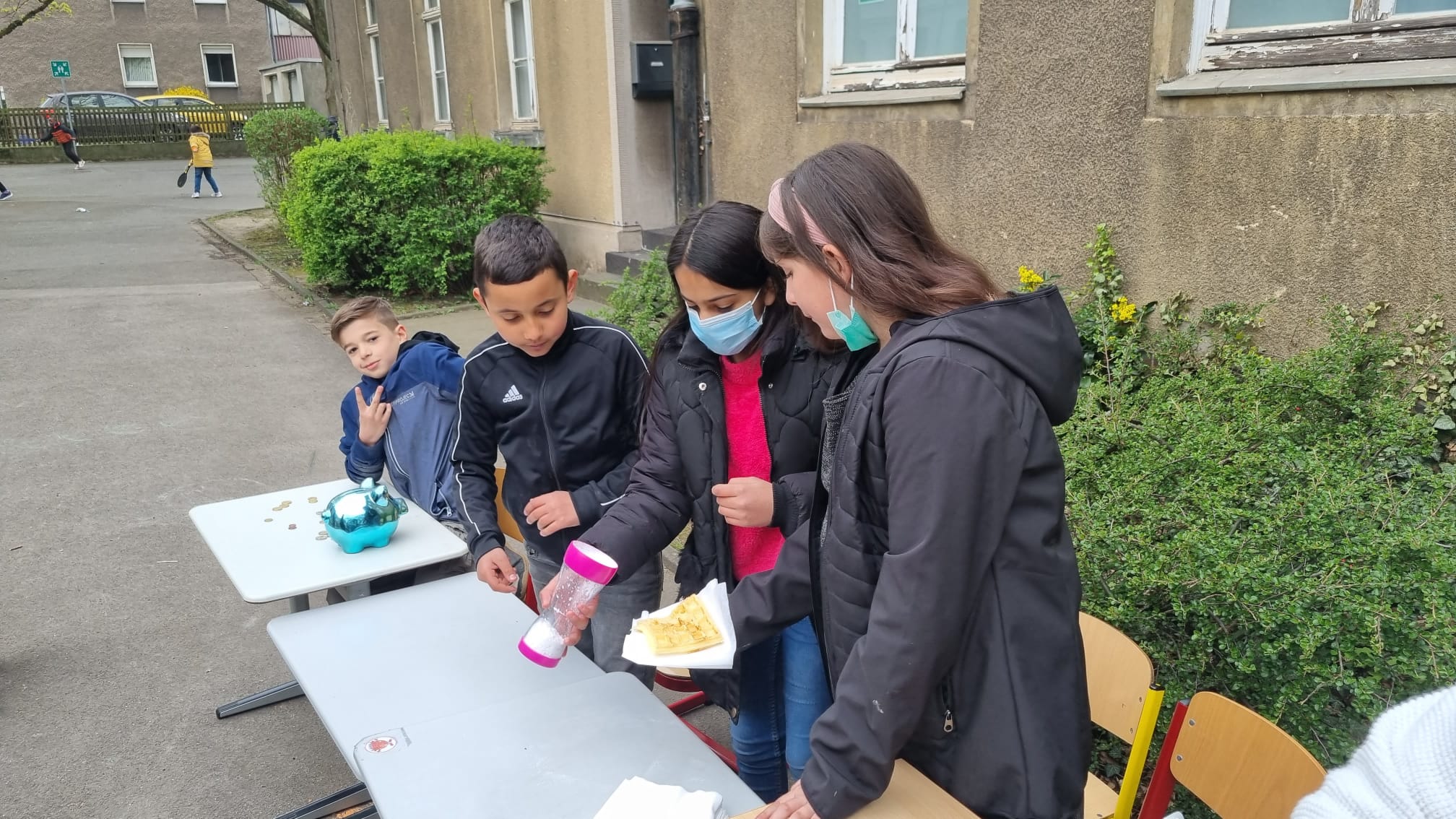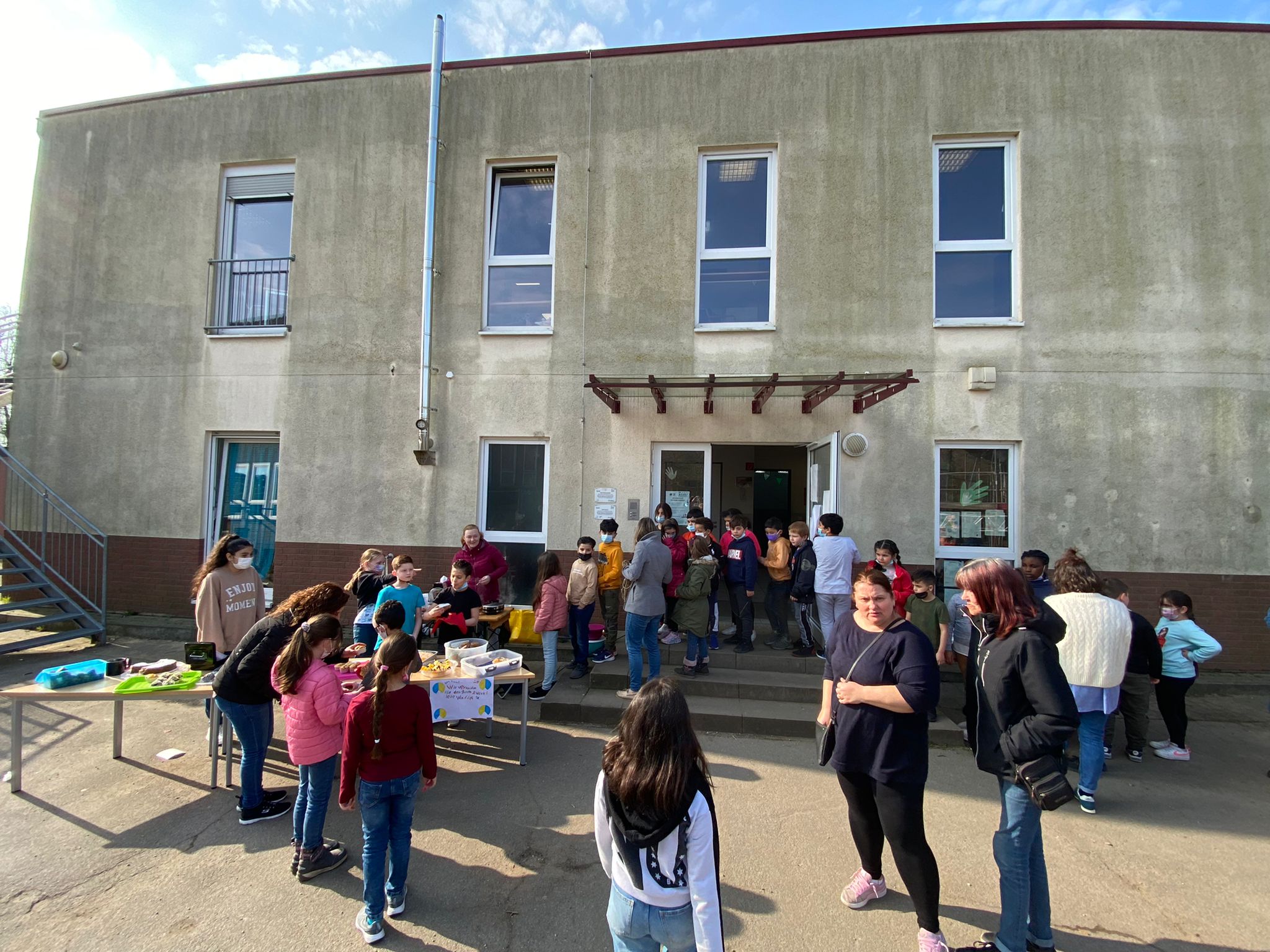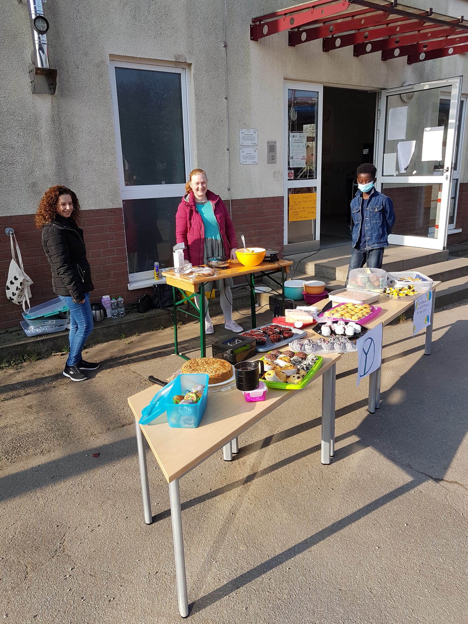 am Freitag, 25.03.2022 haben die Kinder der Füchse-Klasse mit Unterstützung von Helfereltern und Frau Schwarz auf dem Schulhof der Zastrowstraße frische Waffeln, Muffins und Obstspieße zubereitet und verkauft.