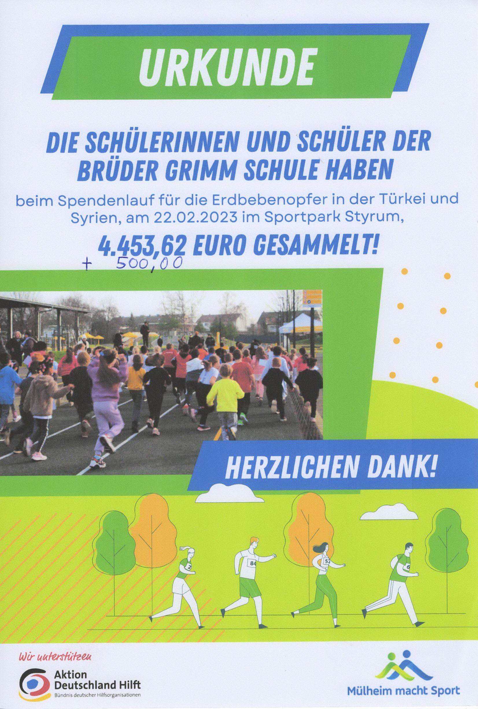 22.02.2023: Spendenlauf für die Erdbebenopfer in der Türkei und Syrien