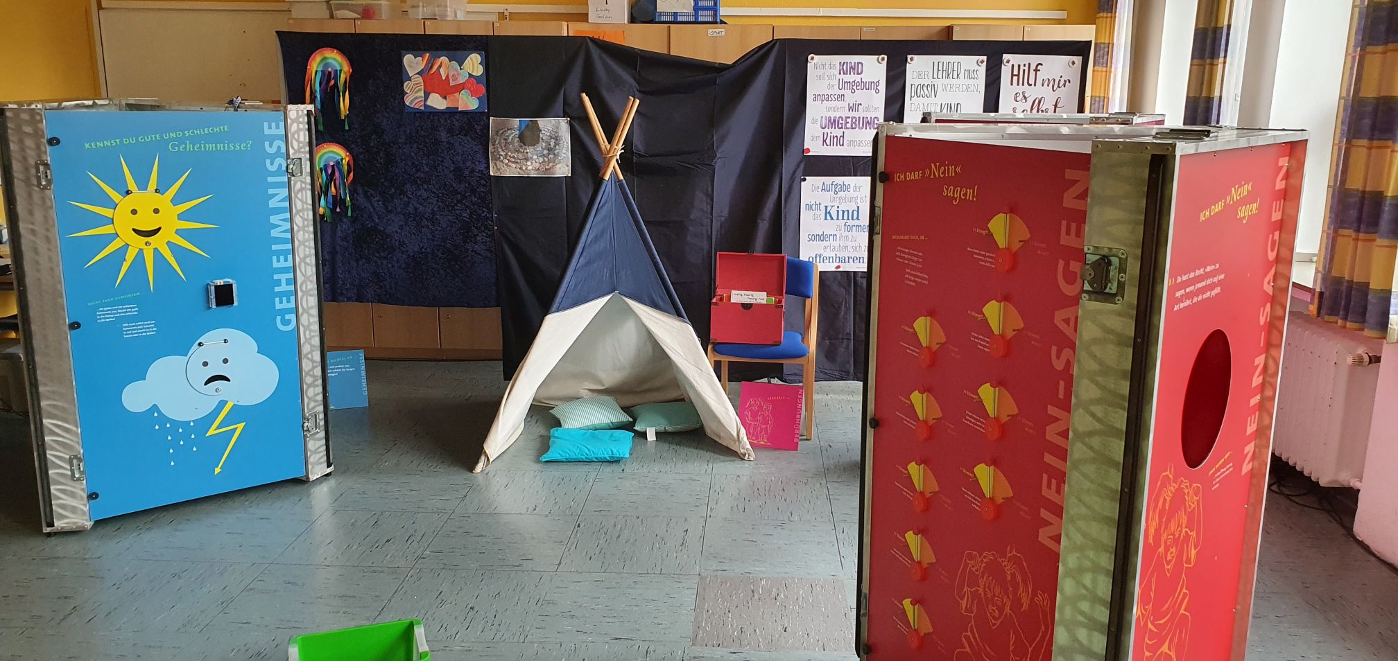 In regelmäßigen Abständen ist die spannende und interaktive Ausstellung "echt klasse" vom Präventionsbüro PETZE für die Kinder unserer Schule zu Gast.